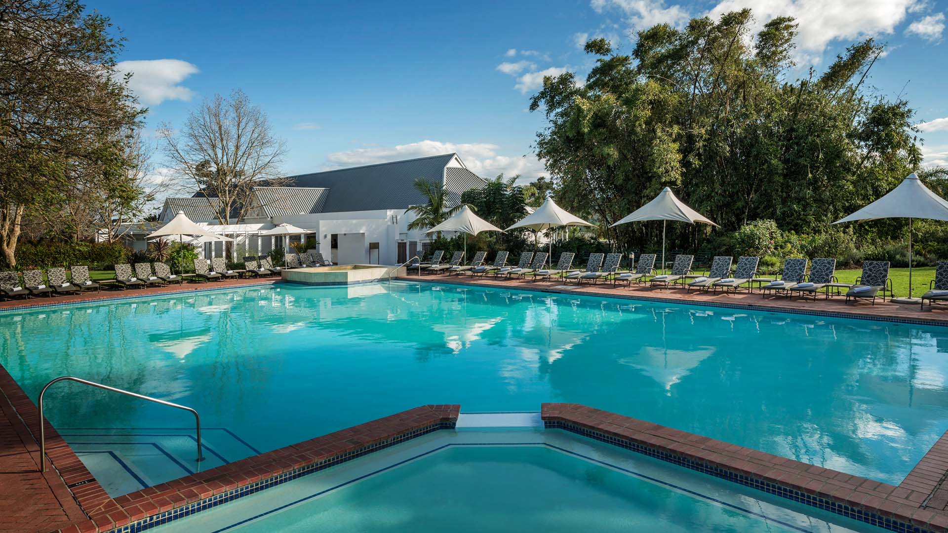 Hier anfragenDas Fancourt Hotel erstreckt sich über eine Fläche von mehr als 600 Hektar grüner Wiesen am Fuße der Outeniqua-Berge und bietet Zimmer, die Komfort und Luxus mit klassischer und raffinierter Dekoration vereinen, darunter Kingsize-Betten, hochwertige Bettwäsche und private Balkone. Die Suiten bieten zusätzliche Räume und personalisierte Dienstleistungen. Die Gärten, mit einer Vielzahl exotischer Pflanzen und Blumen, versprechen eine bunte und lebendige Umgebung, ideal für entspannende Spaziergänge. Der Pool, der sich im Herzen des Resorts befindet, stellt eine erfrischende Oase dar.