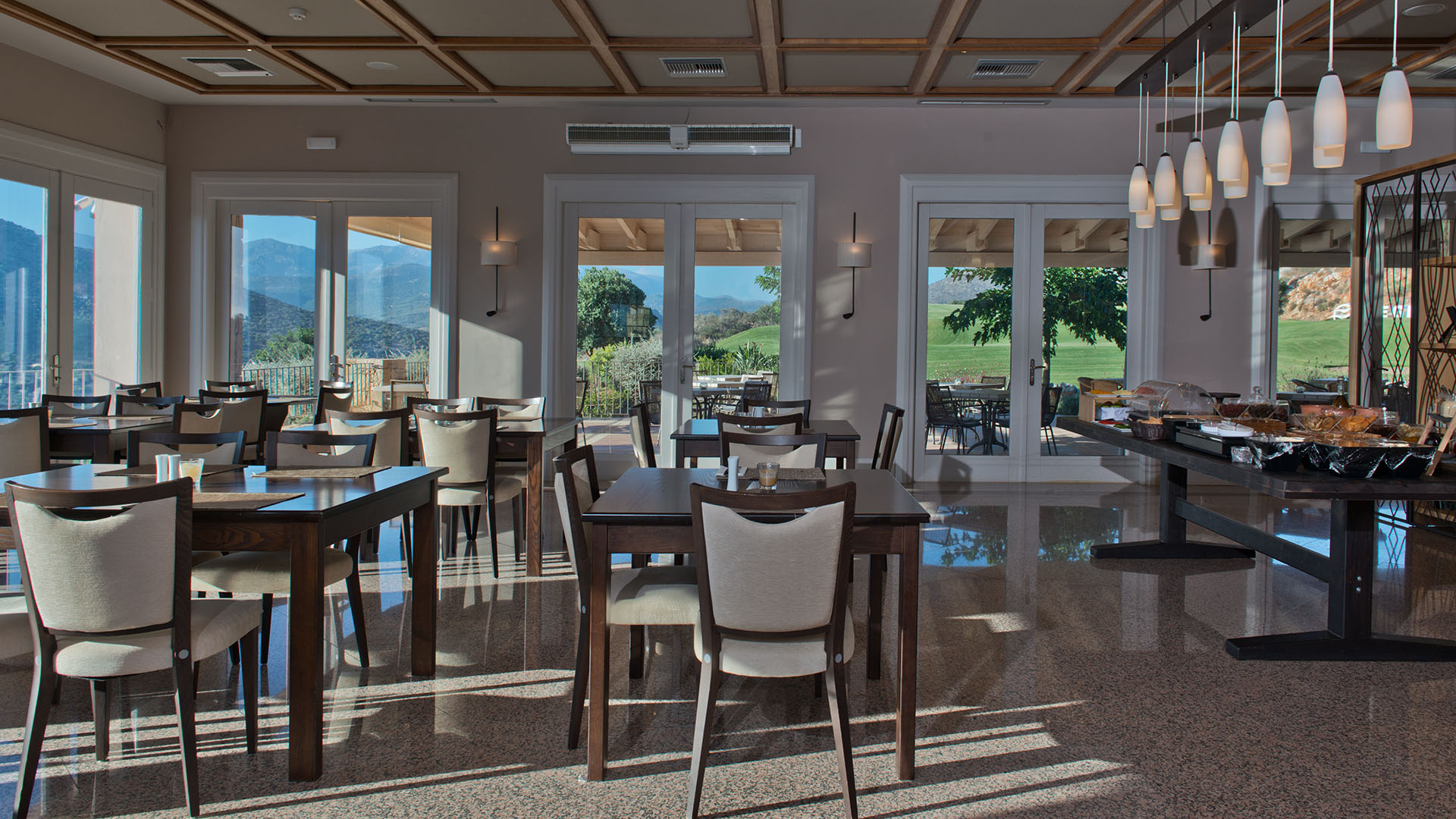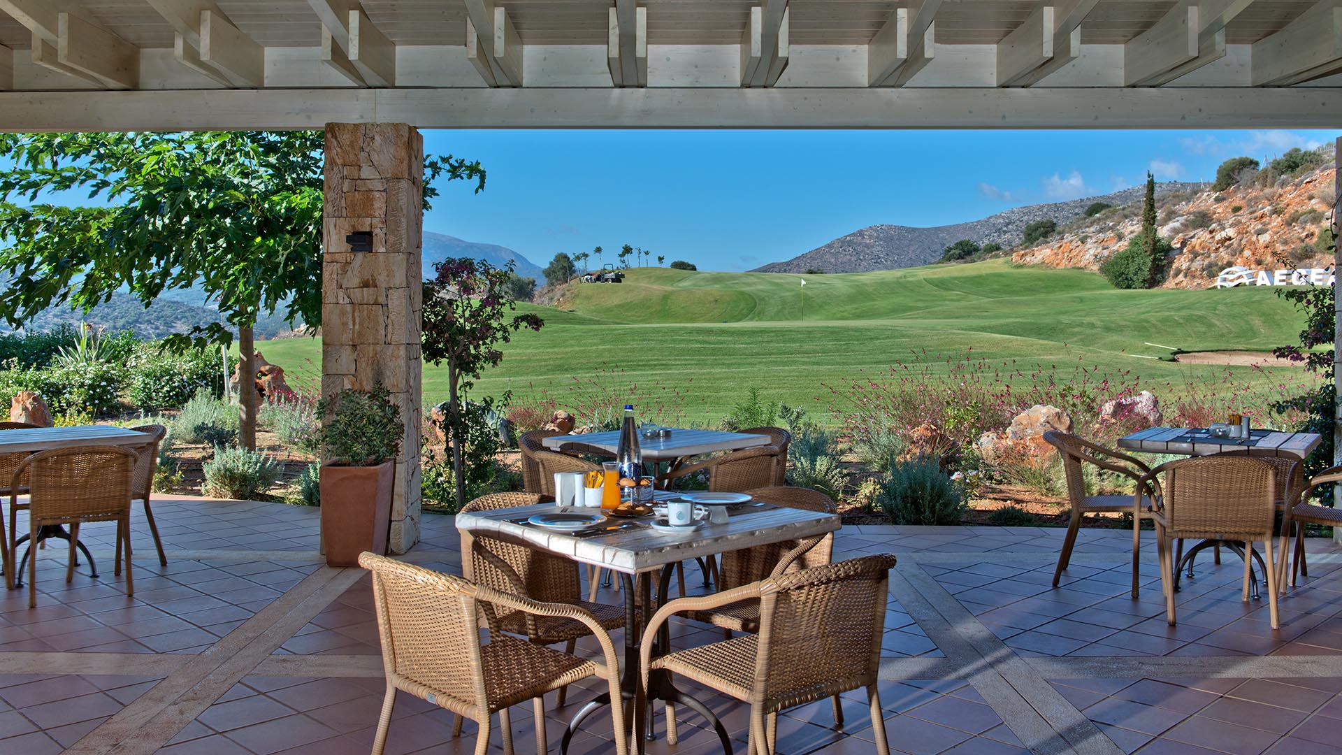 Das Restaurant befindet sich im Clubhaus und bietet exquisite europäische Küche und typische kretische Gerichte sowie jeden Morgen ein reichhaltiges Frühstücksbuffet. Um sich nach einer schönen Golfrunde abzukühlen und das Geschehen auf dem 18. Grün zu verfolgen, ist die La Veranda Bar mit ihrer Open-Air-Terrasse der richtige Ort.