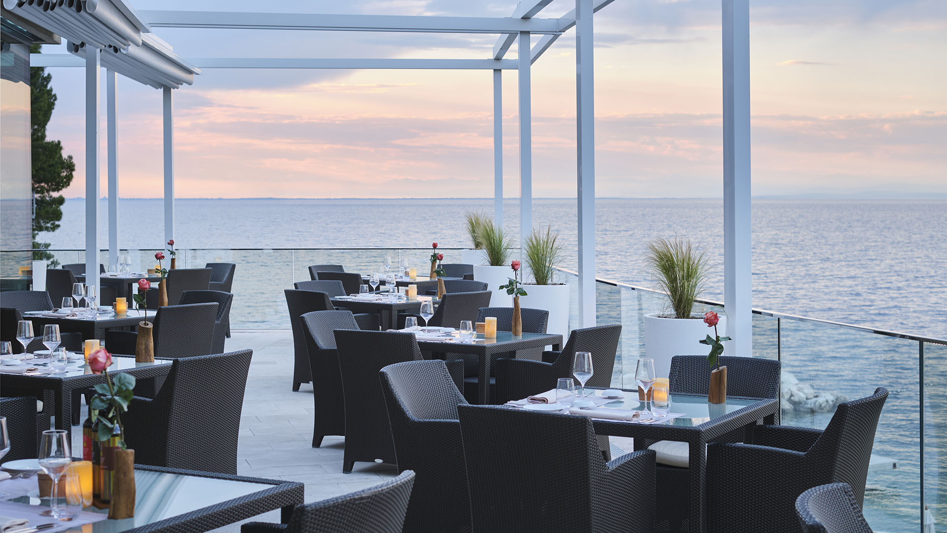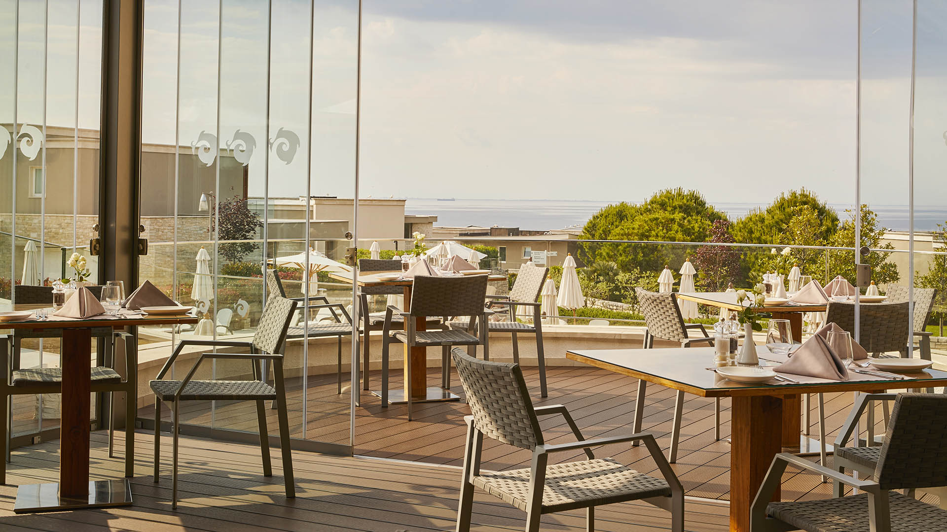 Das luxuriöse Resort beherbergt 3 Bars und 2 Restaurants. Das Dijana verwöhnt mit mediterraner Küche, während das am Strand gelegene Restaurant Kanova traditionelle istrische Spezialitäten anbietet. Cocktails bei Sonnenuntergang oder tagsüber können Sie in der Adriatic Bar oder der Pool Bar genießen. Besonders hervorzuheben ist die Beach Bar, der entspannendste Ort des Resorts mit einer großen Auswahl an Getränken und Snacks, während man die Meeresbrise genießt.
