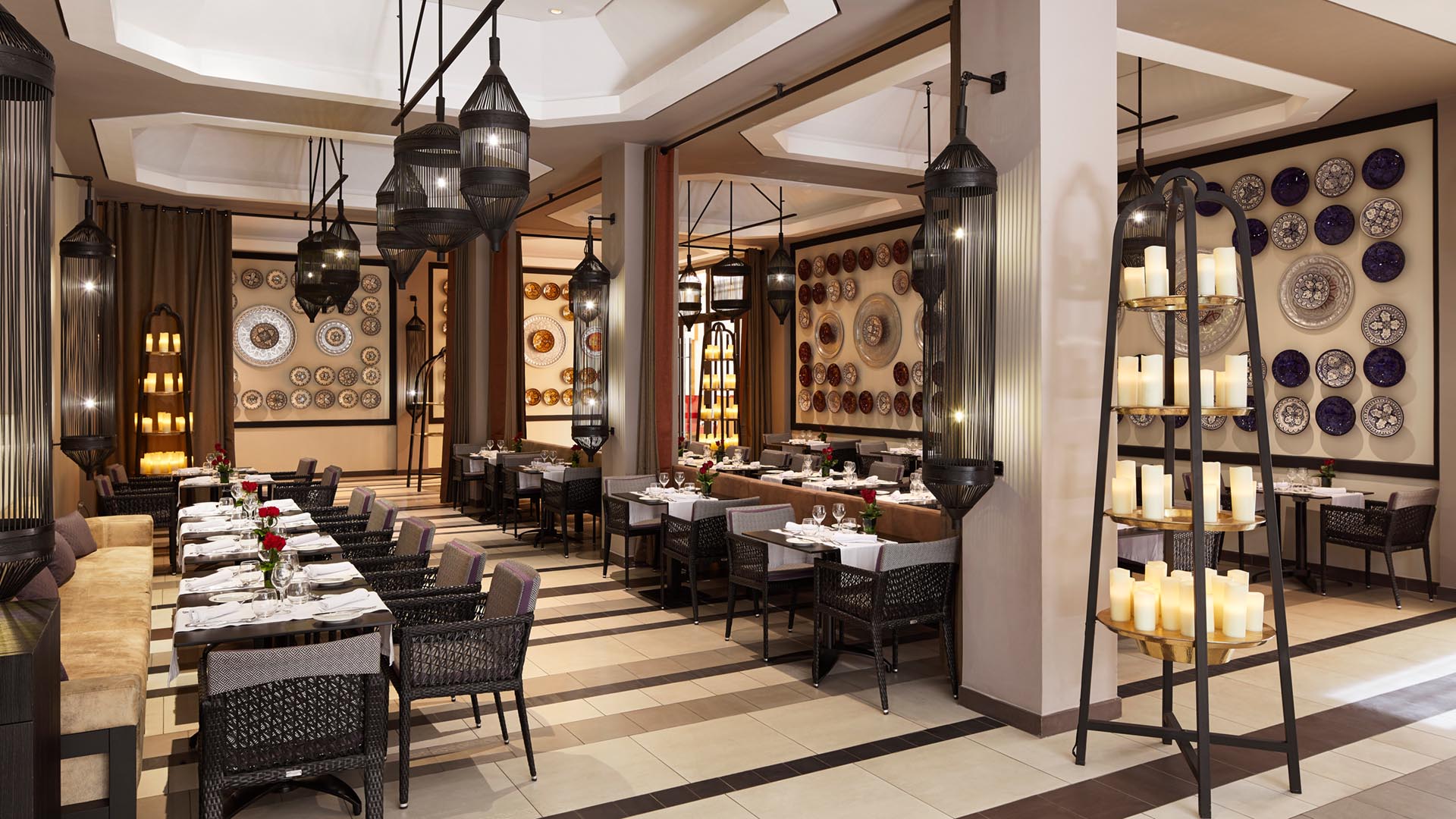 Das Mansour Hotel, das zur Mövenpick-Hotelkette gehört, bietet eine Roof Bar & Lounge und 5 hervorragende Restaurants, die alle eine breite Palette an Gerichten servieren – von traditionell marokkanischen Tajines über Steaks bis hin zu mediterranen und gesunden Bio-Speisen.