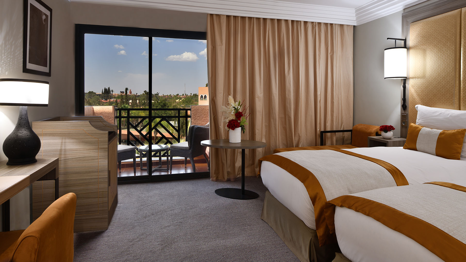 Mehr InfosDas beeindruckende Design des Gebäudes wurde von Ahmed Al Mansour Eddahbi, dem Sultan der Saadier-Dynastie, inspiriert. Es zeichnet sich durch eine warme und einladende Atmosphäre mit modernem Flair aus, wobei der traditionelle marokkanische Stil im gesamten Hotel erhalten bleibt. Die mehr als 500 luxuriösen Zimmer bieten viel Platz und einen atemberaubenden Blick auf die Stadt oder die Gärten. Für Gruppen von Golffreunden gibt es nichts Besseres als die 72 qm großen Suiten, die von bis zu 4 Erwachsenen bewohnt werden können und dennoch genügend Platz für die gesamte Golfausrüstung bieten.