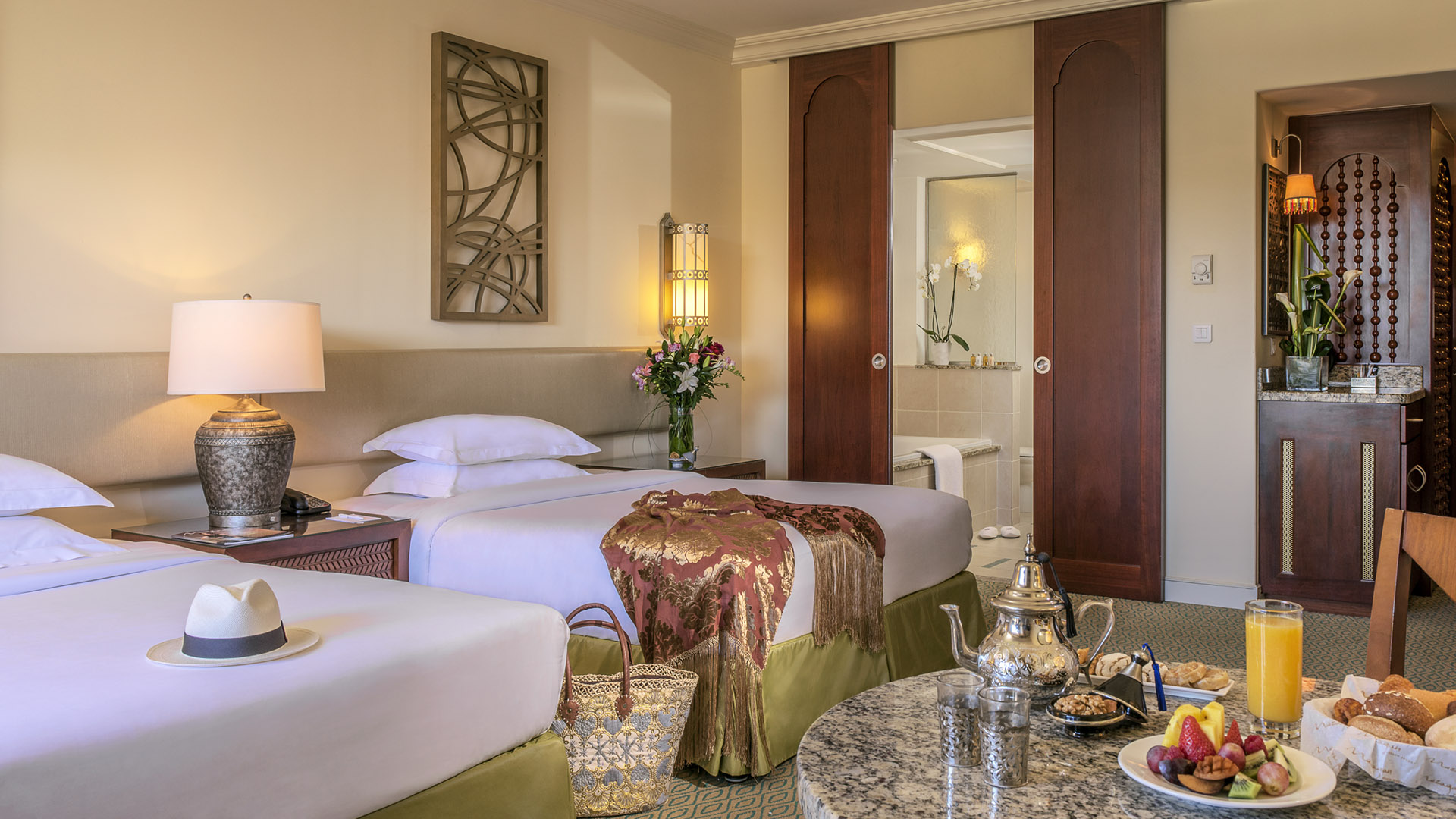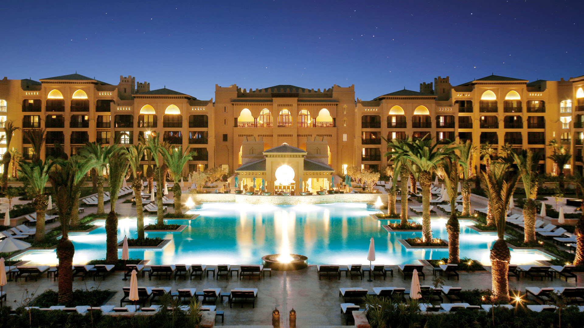 Mehr InfosDas von Dattelpalmen umgebene Mazagan Beach & Golf Resort mit eigenem Privatstrand verzaubert seine Gäste mit 492 Zimmern und Suiten, 13 Restaurants und Bars, zahlreichen Aktivitäten, einem Nachtclub und einem Spa von Weltklasse. Hier können Sie individuelle Massagen oder Gesichtsbehandlungen, Yoga-Kurse und ein hochmodernes Fitnessstudio genießen. Das Markenzeichen des Resorts ist das 100 Quadratmeter große Hammam mit einem atemberaubenden Raum mit Mosaikfliesen, Marmor und heißen und kalten Saunen.