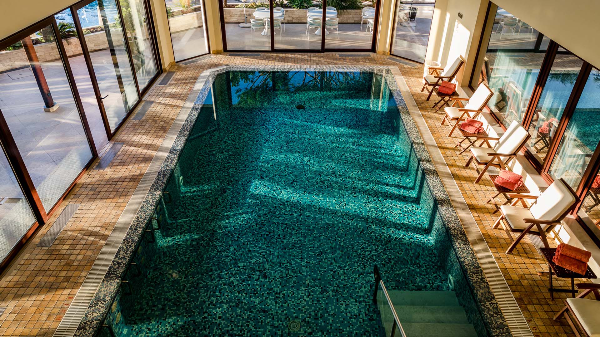 Elegante Swimmingpools bieten sowohl Familien als auch Ruhesuchenden ein Plätzchen zum Entspannen. Ob Sie im beheizten Außenpool schwimmen oder sich auf einer der stilvollen Sonnenliegen entspannen – der Blick auf das Meer und die Lagunenlandschaft ist allgegenwärtig.