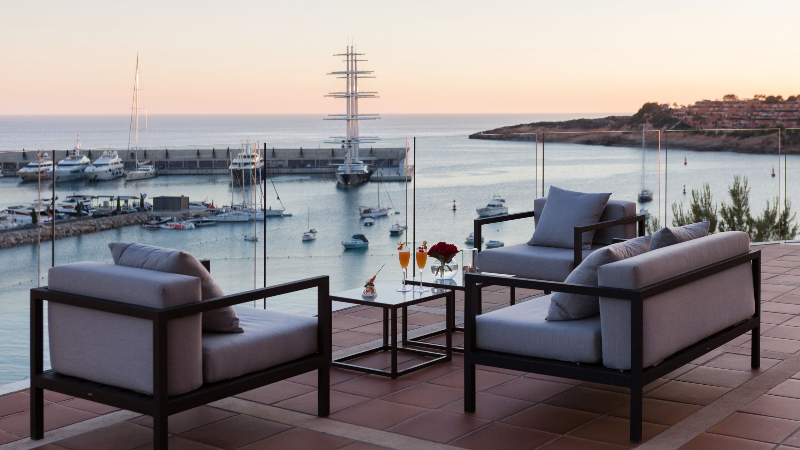 Das Hauptrestaurant, Adriana, ist ein Ort, an dem Qualität und raffinierter Service aufeinandertreffen und ein authentisches kulinarisches Erlebnis bieten. Strategisch auf der untersten Etage gelegen, bietet dieses einen Blick auf das Meer und den luxuriösen Yachthafen Port Adriano von den großzügigen Fenstern oder von der hübschen Außenterrasse aus. Genießen Sie die Spezialitäten von Chefkoch Diego Vázquez während des Mittagessens mit einer Auswahl von neu interpretierten Tapas, begleitet von ausgewählten Weinen. Die Bar Adriana, ideal für einen Coffee Break oder Cocktails, bietet exklusive Abende mit nächtlichem Blick auf die Bucht und die Lichter des Hafens.
