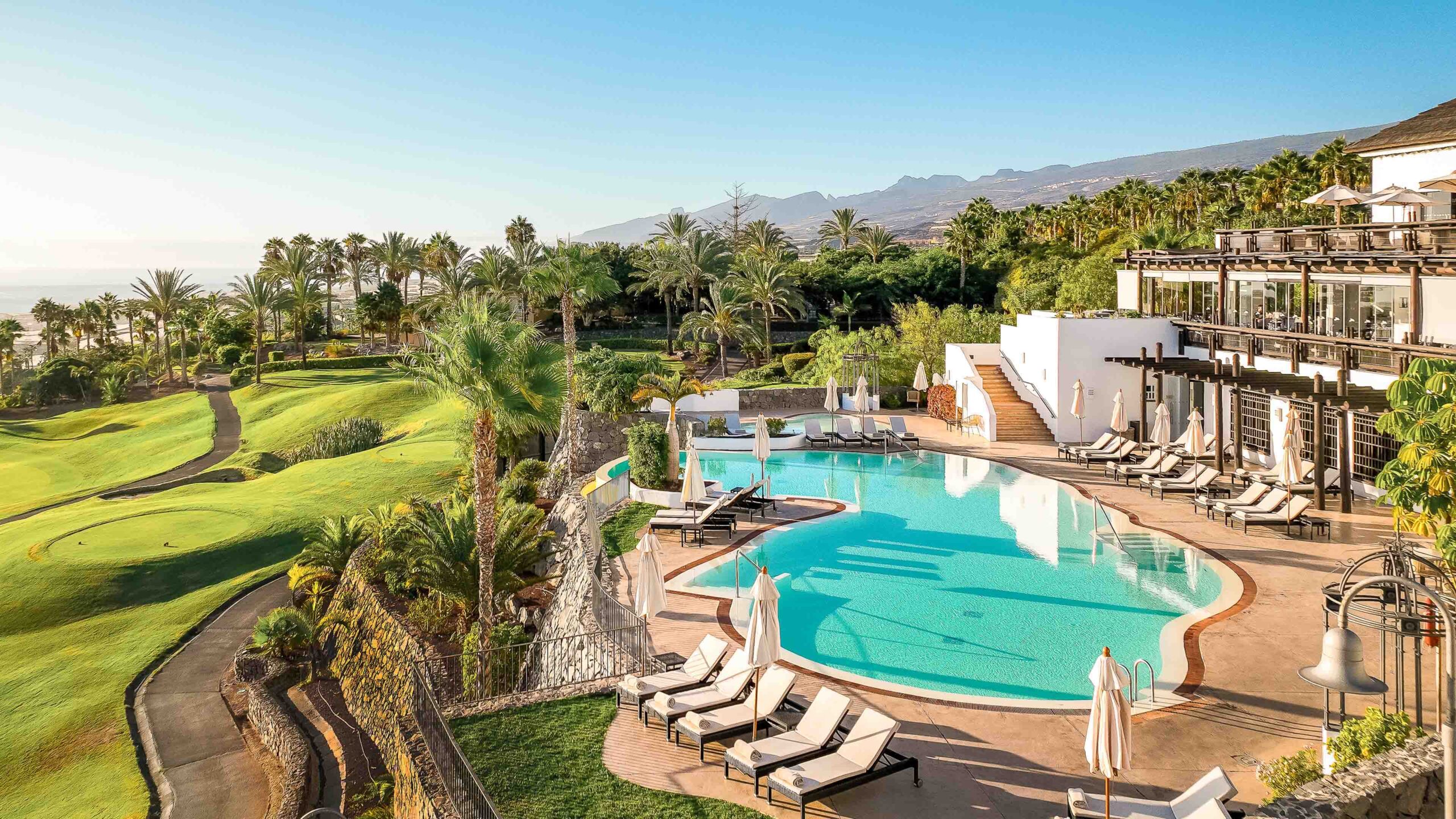 Das Hotel Las Terrazas de Abama Suites bietet seinen Gästen einen luxuriösen Aufenthalt inmitten einer typisch kanarischen Landschaft. Umgeben von üppiger Vegetation, Tausenden von Palmen und dem 18-Loch-Golfplatz Abama Golf, ist es eine wahre Oase der Ruhe und Entspannung für einen unvergesslichen Golfurlaub auf Teneriffa.