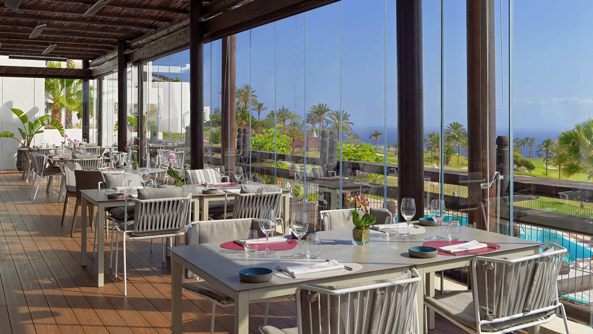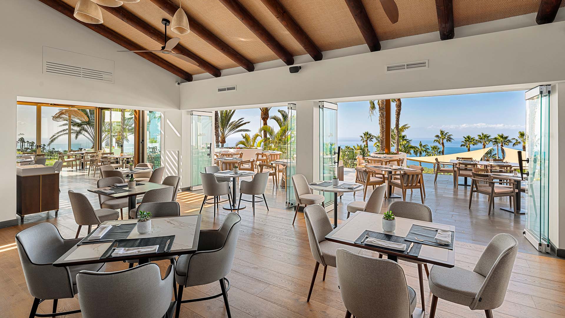 Das gastronomische Angebot des Las Terrazas de Abama Suites verspricht eine kulinarische Reise, die selbst die anspruchsvollsten Gaumen zufriedenstellt. Im Restaurant Melvin kreiert der renommierte Küchenchef Martín Berasategui durch eine Fusion von lokalen und internationalen Aromen raffinierte Speisen und bietet seinen Gästen damit eine Gourmet-Erfahrung der Extraklasse. Ein weiteres Highlight des Restaurants ist die Terrasse mit Meerblick – ein perfekter Ort für ein romantisches Abendessen bei Sonnenuntergang. Für eine entspanntere Atmosphäre bekannt, spezialisiert sich das Restaurant Tágara auf kleine spanische Köstlichkeiten, begleitet von einer erlesenen Weinkarte. Gäste können auch einen erfrischenden Cocktail an der Poolbar Sunway genießen, die den ganzen Tag über eine Vielzahl von Getränken und leichten Snacks serviert. Seit Anfang des Jahres 2025 haben Golfer bei ihrem Aufenthalt im Las Terrazas de Abama zudem die Möglichkeit im neuen Atlántico Restaurant, das sich im Clubhaus des Abama Golf befindet, ein spektakuläres Frühstück auf einer atemberaubenden Terrasse mit Blick auf den Atlantischen Ozean zu genießen und zum Mittag- und Abendessen eine Auswahl an einzigartigen Gerichten und exquisiten Kreationen zu genießen. Das Restaurant ist im Halbpensionsangebot enthalten.