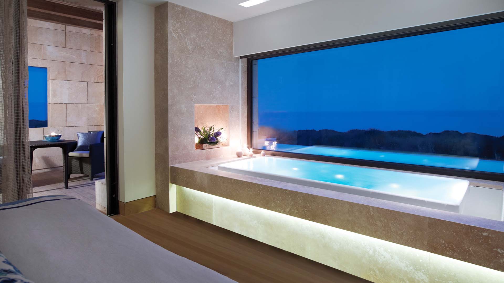 Für Entspannung sorgt das Anazoe Spa, ein Wohlfühlrefugium, das Behandlungen basierend auf alten griechischen Heilmitteln und natürlichen Inhaltsstoffen wie Olivenöl anbietet. Die Einrichtungen umfassen Behandlungsräume, Saunen, Jacuzzis und Ruhezonen. Darüber hinaus gibt es ein Fitnesscenter mit modernster Ausstattung – ideal für Gäste, die aktiv bleiben möchten.