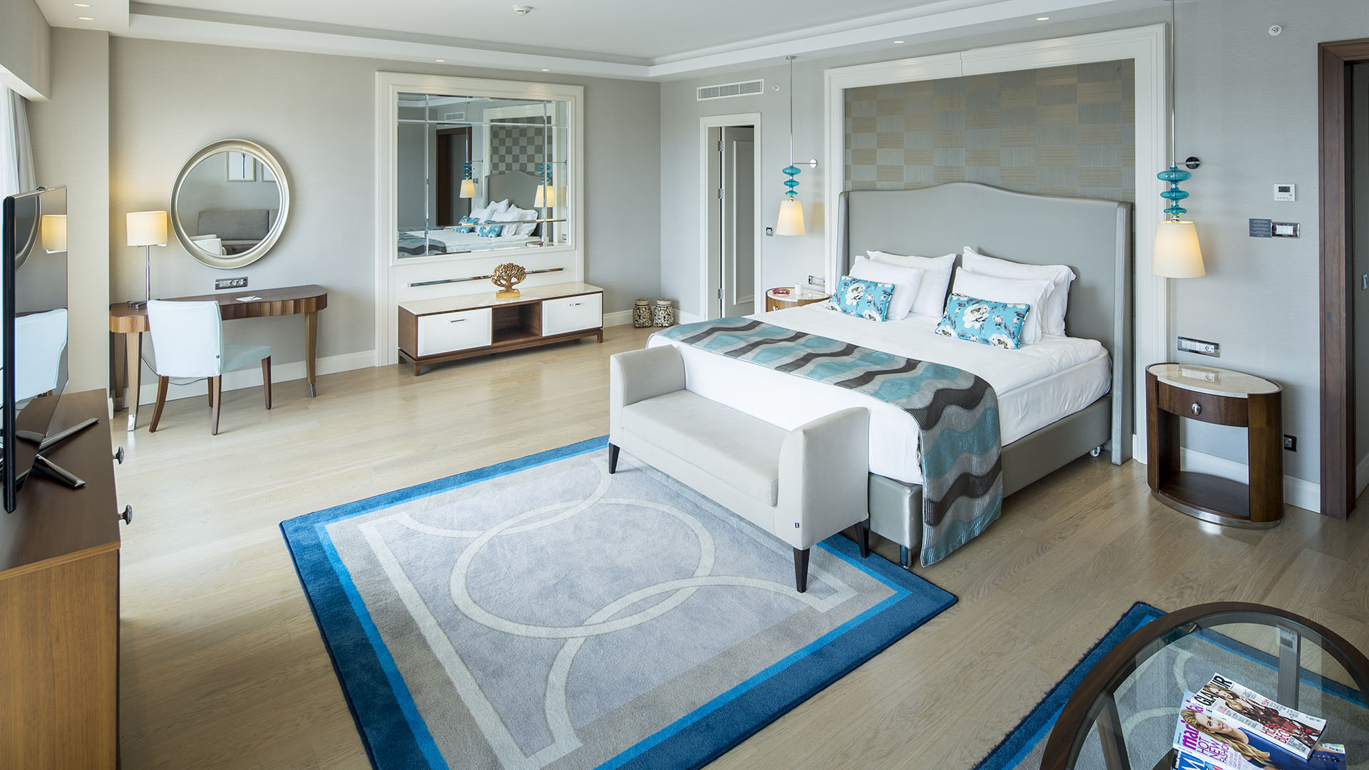Inmitten eines malerischen Pinienwaldes am Fluss Beşgöz gelegen, verfügt das Titanic Deluxe Golf Belek über eine Vielzahl moderner Zimmer, Suiten und Villen, die auf Komfort und Privatsphäre ausgelegt sind. Alle Unterkünfte sind mit modernster Technologie, hochwertigen Betten, privaten Terrassen und atemberaubenden Ausblicken auf den Fluss, das Meer, die Berge oder den Golfplatz ausgestattet. Die privaten Villen haben exklusive Pools und bieten personalisierten Service.