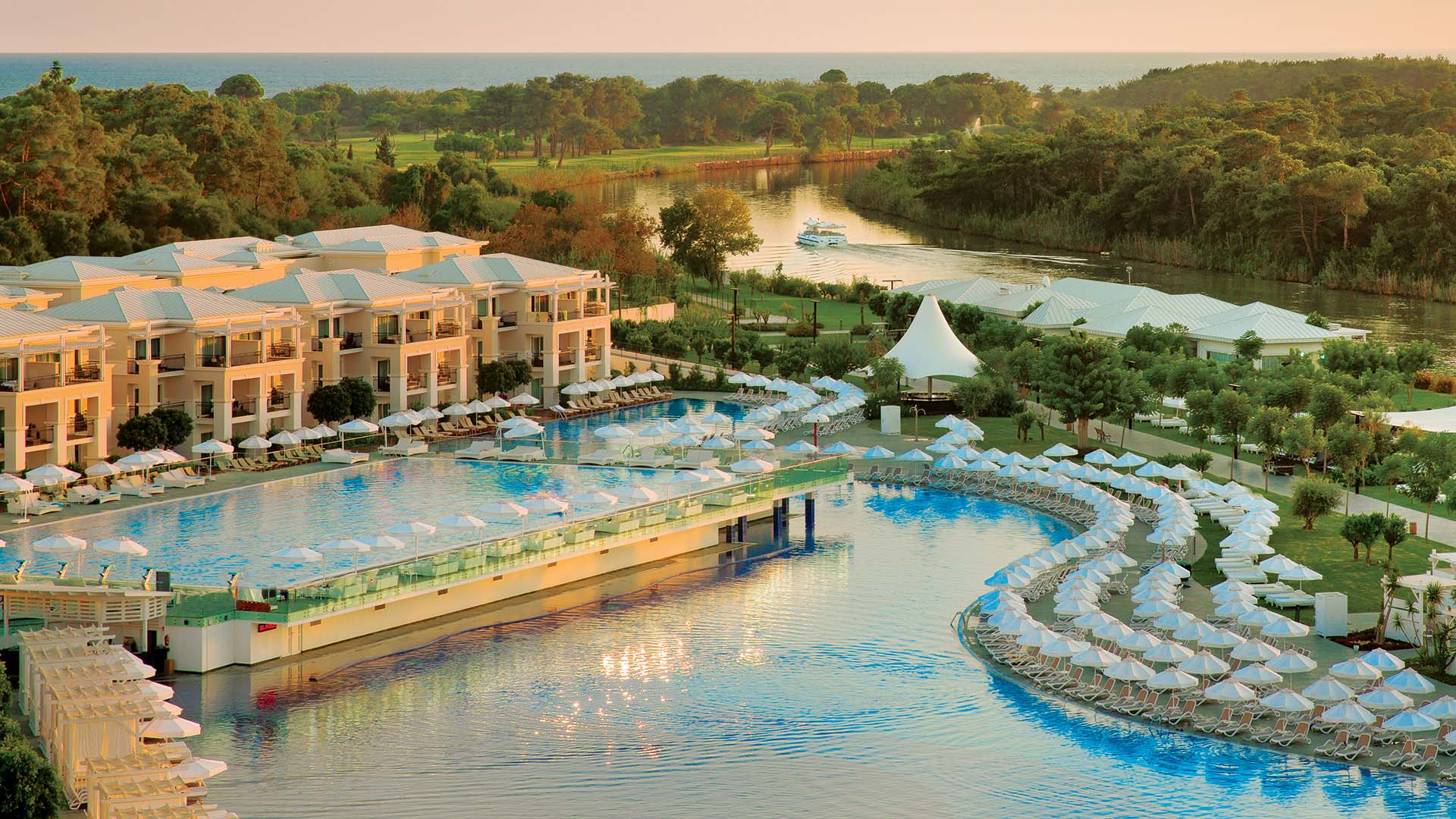 Das Titanic Deluxe Golf Belek ist ein exklusives Resort mit einer Fläche von 170.000 Quadratmetern in Belek, Antalya, das nach dem Deluxe-All-Inclusive-Konzept betrieben wird. Umgeben von üppigen Pinienwäldern, dem Fluss Beşgöz und den ruhigen Wassern des Mittelmeers vereint dieses Resort Komfort mit einer beeindruckenden natürlichen Umgebung. Dank seiner einzigartigen Lage in einer Landschaft, die zu Entspannung und zur Verbindung mit der Natur einlädt, ist es das ideale Reiseziel für einen unvergesslichen Golfurlaub in der Türkei.