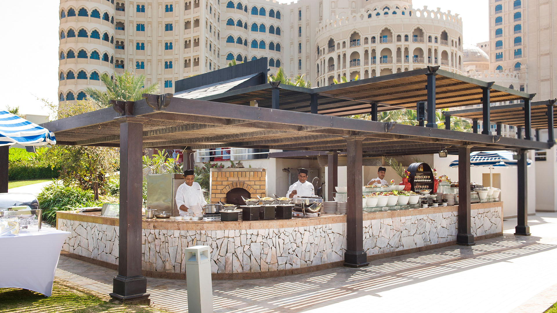 In den 9 Restaurants und Lounges des Resorts werden die Gäste mit exquisiten Speisen aus aller Welt verwöhnt. Japanische Köstlichkeiten werden im Restaurant UMI serviert, gegrilltes Fleisch und frische Meeresfrüchte im außergewöhnlichen Lexington Grill und traditionelle arabische Gerichte im Qasr Al Bahar. Wenn es Zeit wird, sich von der Wüstenhitze abzukühlen, ist die Azure Pool & Beach Bar der richtige Ort und wenn Sie traumhafte Sonnenuntergänge beobachten möchten, erwartet Sie der Sunset Beach Club mit DJ-Sets und kreativen Cocktails.