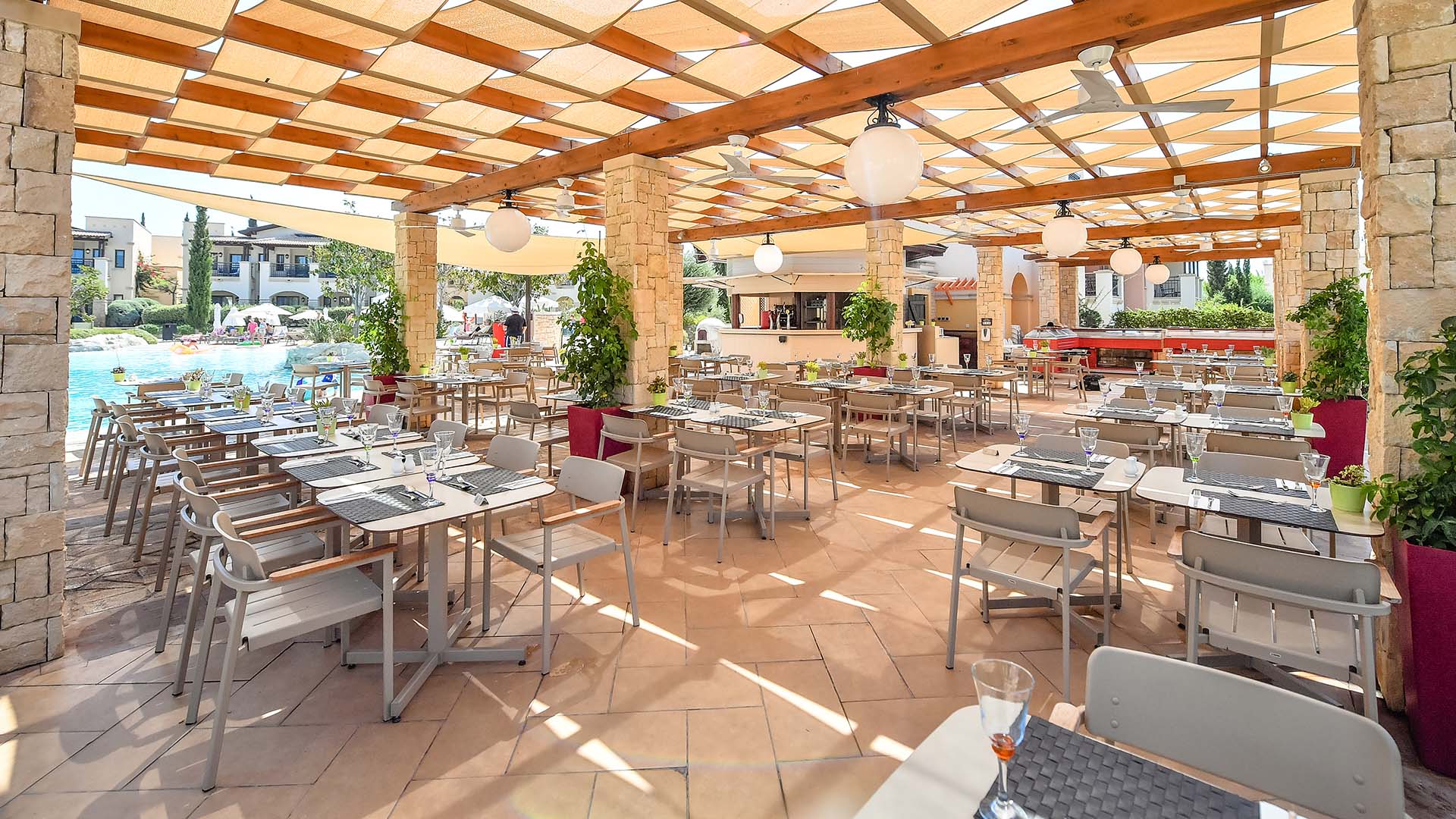 Der Sportkomplex Aphrodite Hills verfügt außerdem über 4 Sand- und 5 Hartplätze, 2 Paddle-Tennisplätze, einen Basketballplatz, eine Sporthalle, eine Fußballschule und ein Fahrradzentrum. Den Hotelgästen steht der Bonemare Beach Club zur Verfügung, der am Privatstrand des Resorts liegt und über ein Restaurant mit frischen Meeresfrüchten verfügt. Auf dem Dorfplatz, dem zentralen Punkt der Anlage, befinden sich die vielfältigen und schmackhaften À-la-carte-Restaurants und erfrischenden Bars. Ein idealer Treffpunkt mit einer Bank, einer Kapelle, einer Apotheke, einem Supermarkt und mehreren Designer-Boutiquen.