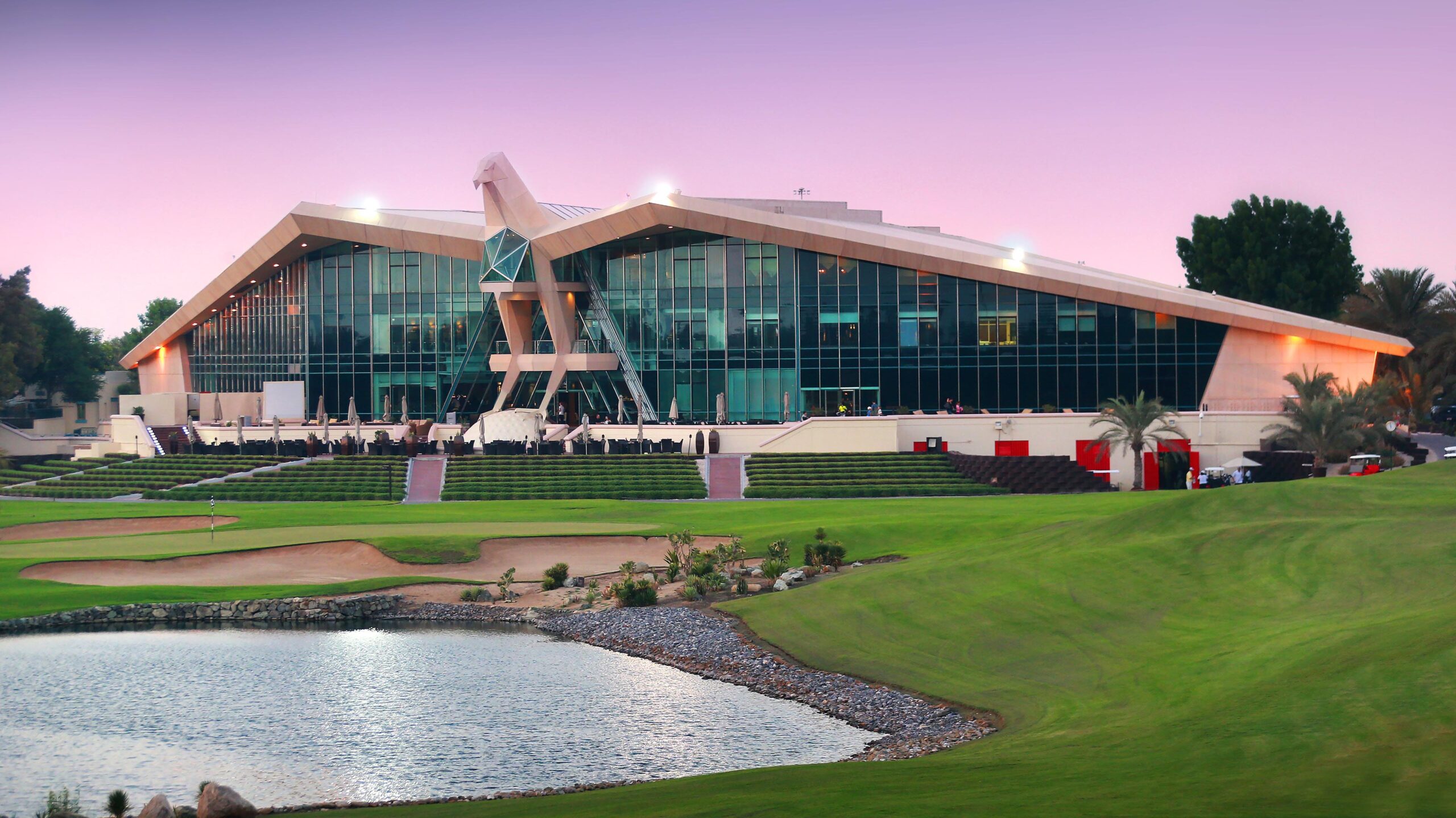 Das ikonische Clubhaus in Form eines Falken mit ausgebreiteten Flügeln dominiert den gesamten Golfclub. Im ersten Stock befindet sich die Championship Lounge, ein idealer Ort, um Ihr Spiel Revue passieren zu lassen, während Sie in einer entspannten und eleganten Atmosphäre einen Drink oder ein Abendessen genießen. Im Erdgeschoss, nur einen Putt vom 9. und 18. Loch entfernt, verwöhnen das Café 28 & The Falcon Terrace die Golfer mit internationalen Gerichten, Snacks vor dem Spiel oder einem erfrischenden Getränk. Darüber hinaus verfügt der Club auch über eine Swim-Up-Bar, an der Sie sich entspannen können, während Sie sich im Pool erfrischen.