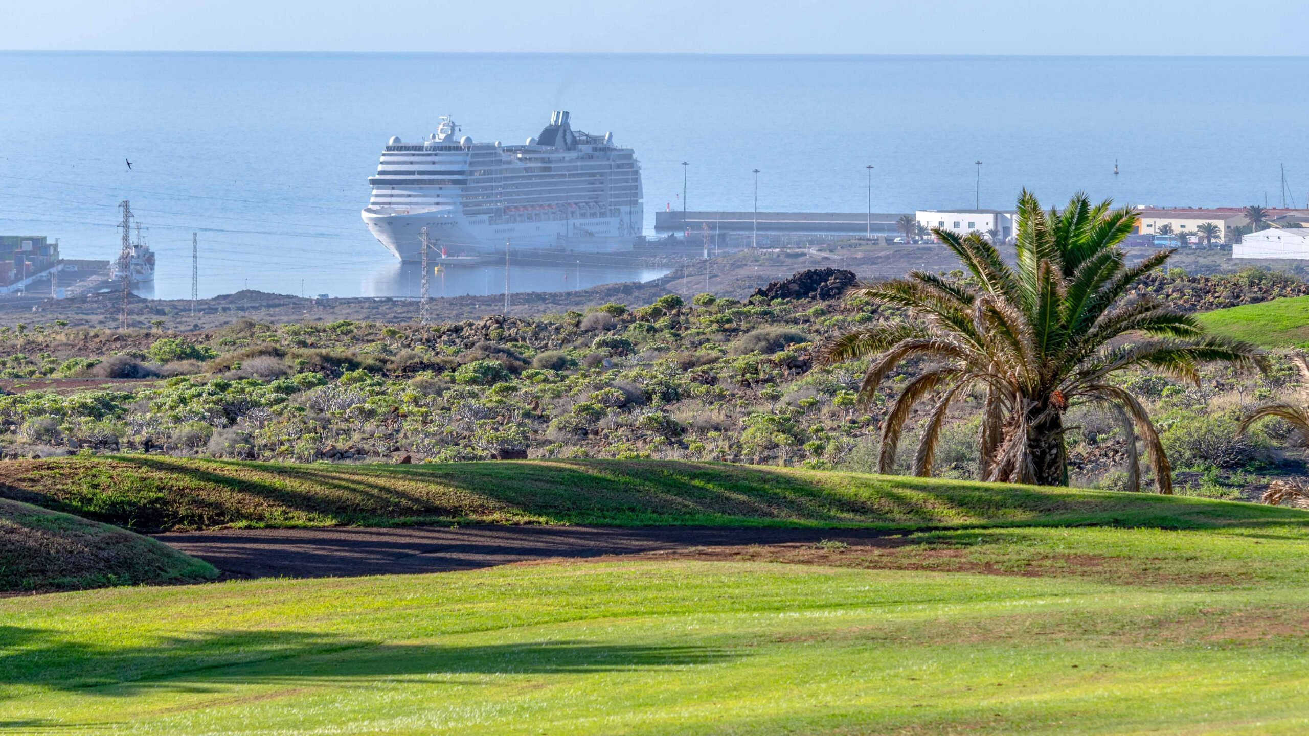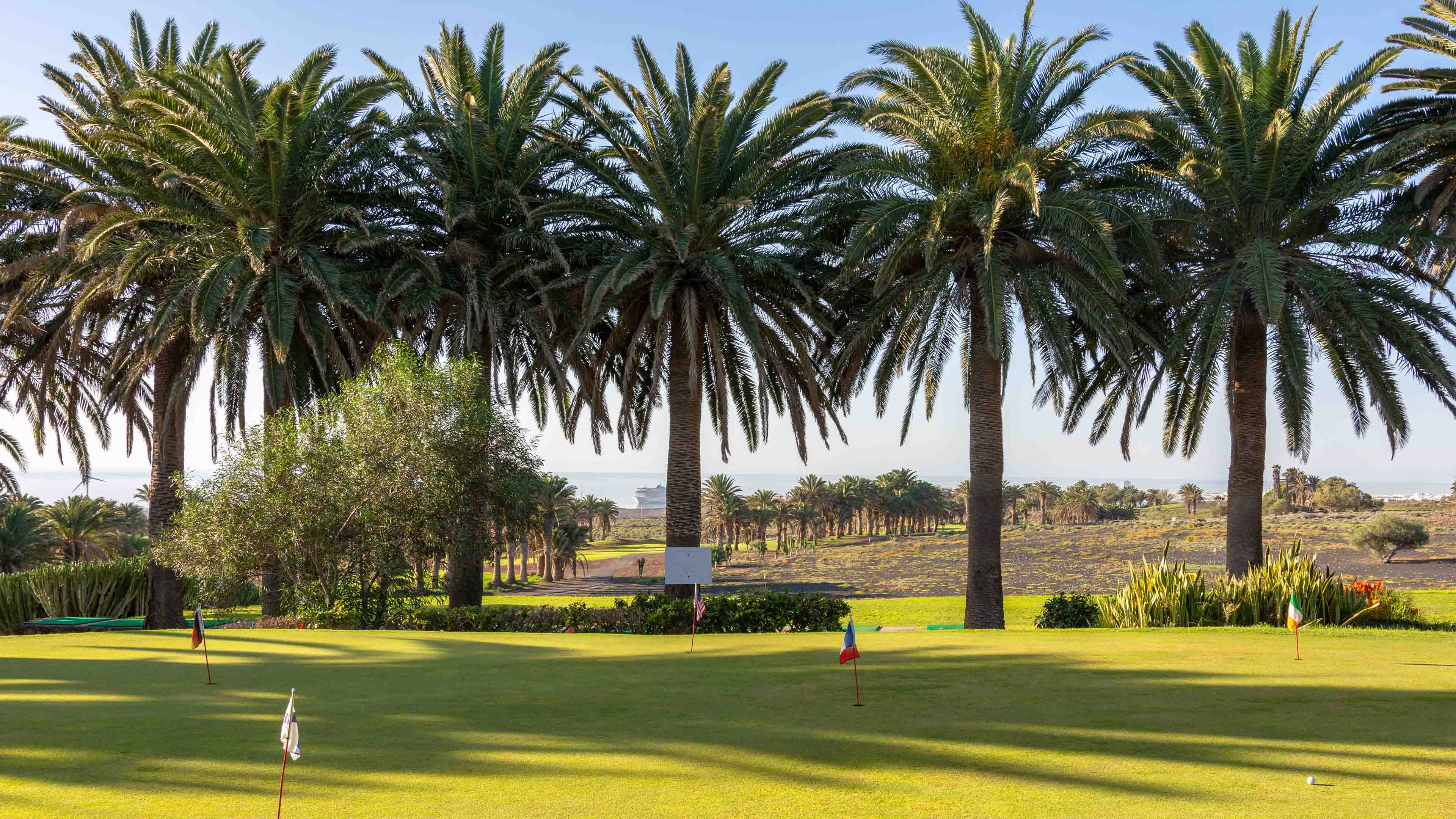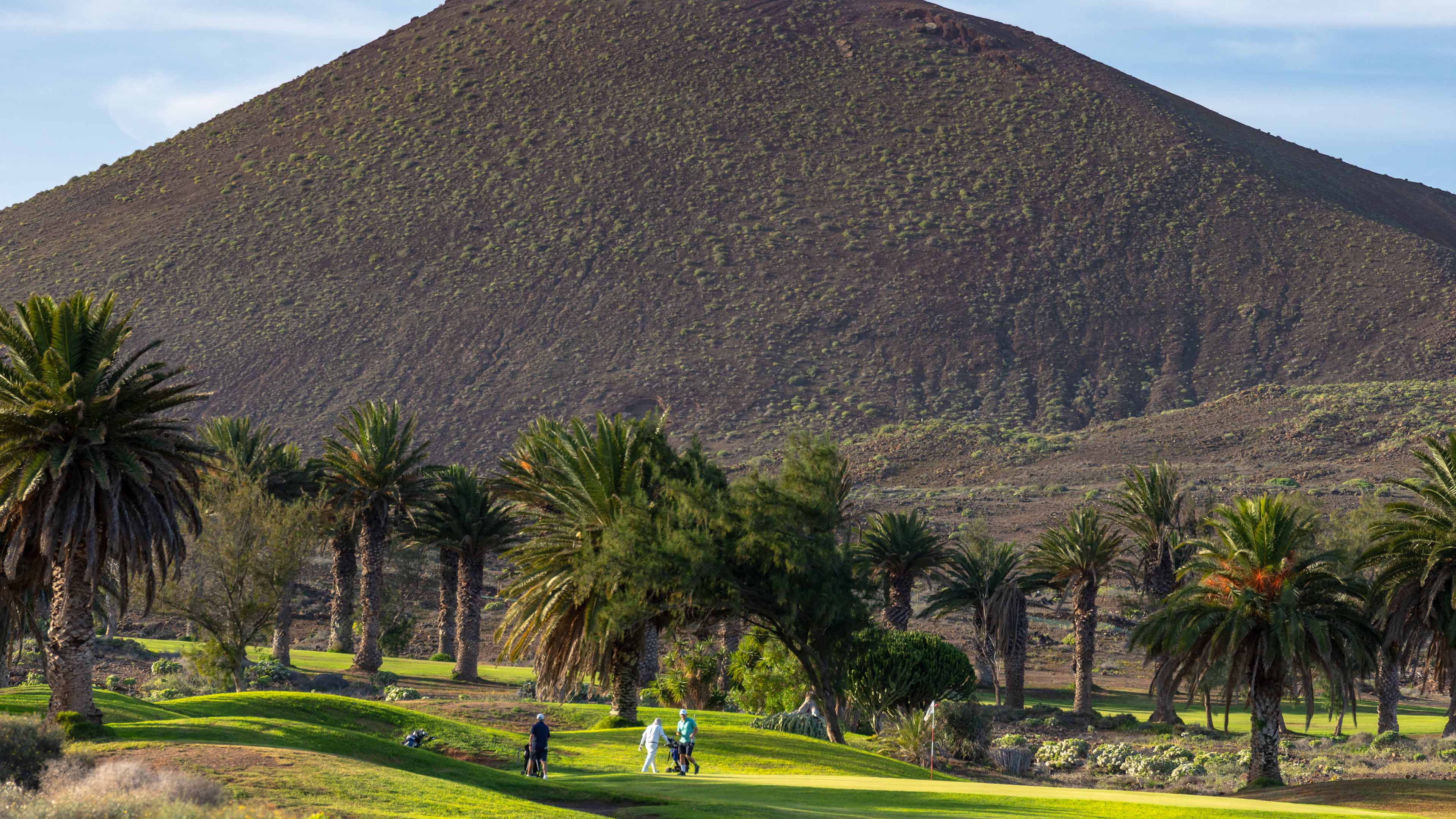 Hier anfragenDer 6.476 Meter lange Golfplatz ist sanft und abwechslungsreich und bietet atemberaubende Ausblicke auf den Atlantischen Ozean, stellt aber sowohl für Amateure als auch für Profigolfer genügend Herausforderungen dar. Die Löcher verlaufen zwischen versteinerten Lavafelsen, Kakteen und mehr als 3500 Palmen, wobei der vulkanische Sand („El Picón“) und der Wind die Schwierigkeit dieses Par 72 noch erhöhen.
