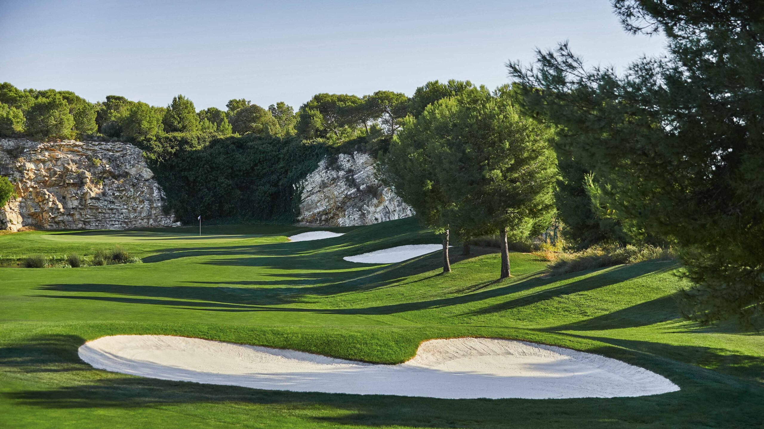 Eingebettet zwischen Kiefern und Klippen ragt The Hills als einer der besten Golfplätze Spaniens hervor. Mit beeindruckenden Meerblicken von seinen strategisch gelegenen erhöhten Abschlägen bietet dieser Platz 18 markante Löcher, die sein Gegenstück The Lakes ergänzen. Die Strecke umfasst einen beeindruckenden „Amen Corner“ und von Wasser und Bäumen gesäumte Löcher, die ein herausforderndes, aber lohnendes Finale bieten. Und vergessen Sie nicht die malerischen Ausblicke auf das Mittelmeer, das Prades-Massiv und das Naturschutzgebiet Llaberia, die dieses Golferlebnis wirklich außergewöhnlich machen. Die breiten Fairways des Infinitum Hills Platzes bieten eine ideale Gelegenheit, Ihr bestes Spiel zu entwickeln. Es gibt mehrere Par-Drei-Löcher, darunter das berühmte Loch 8, dessen Grün von Wasser an der Vorderseite und sandigen Bereichen umgeben ist.