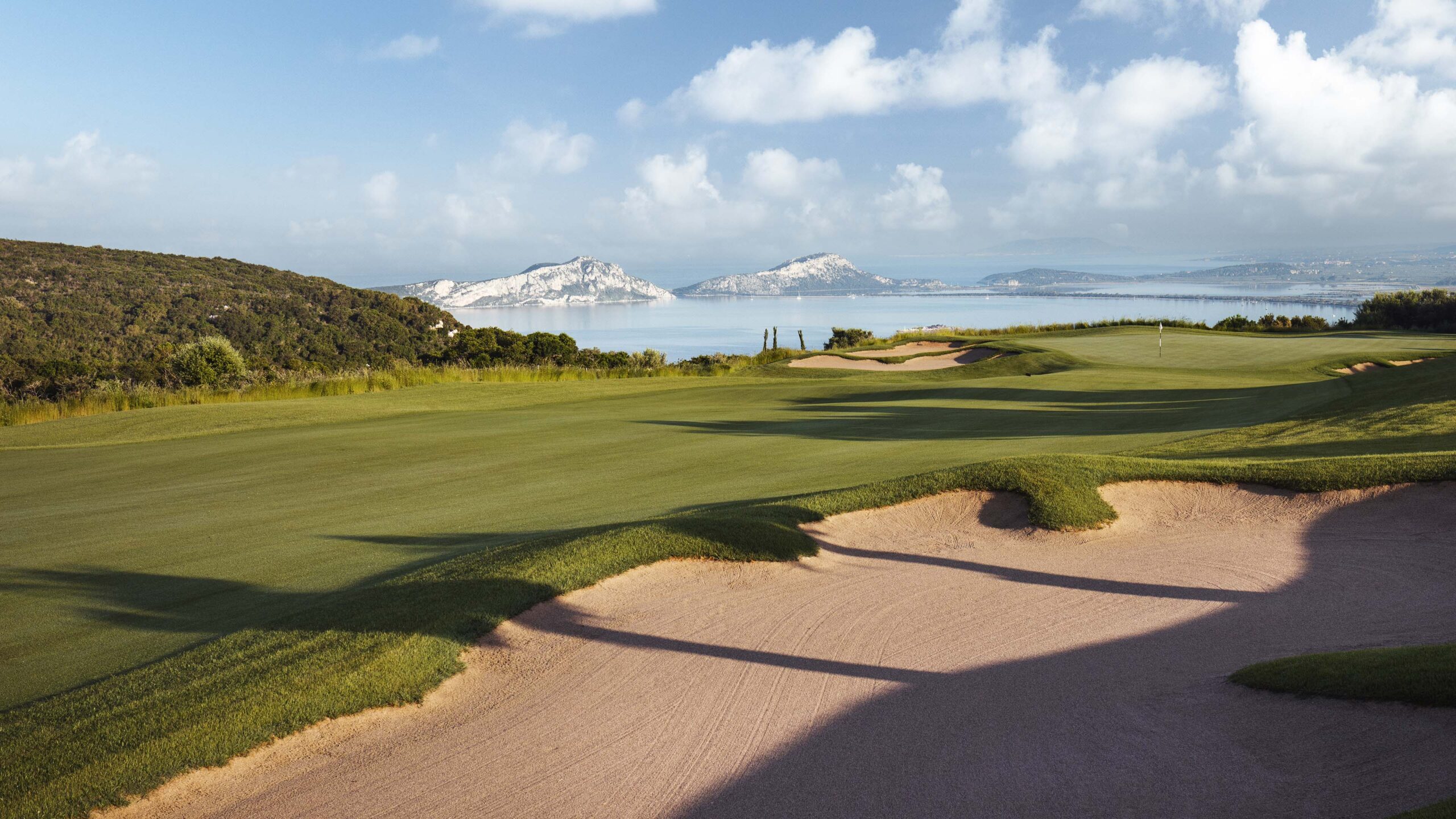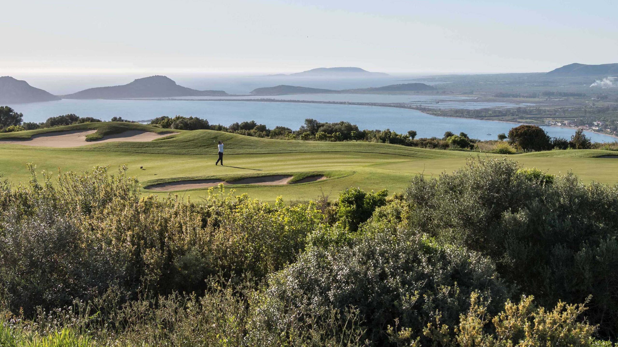Die 5 Abschlagsmöglichkeiten machen ihn jedoch zu einem angenehmen Platz für alle Handicaps. Ein weiteres Element, das Sie mit Ihrem Driver berücksichtigen müssen, ist die fast immer vorhandene Meeresbrise, was zum Teil auf die wenigen Bäume und die Höhe des Platzes zurückzuführen ist. Im Allgemeinen sind die Fairways tadellos, etwas hart, einige von ihnen blind und bergauf und bergab. Beim Putten müssen Sie Ihren Schlag kalibrieren, denn die breiten Flächen der Grüns sind schnell. Die Schönheit des Platzes wird vom 11. Grün, dem 12. Par-3-Abschlag, dem 13. bis 15. Par-4-Abschlag und dem 16. Par-3-Abschlag, welche alle die historische Bucht von Navarino überblicken, noch unterstrichen.