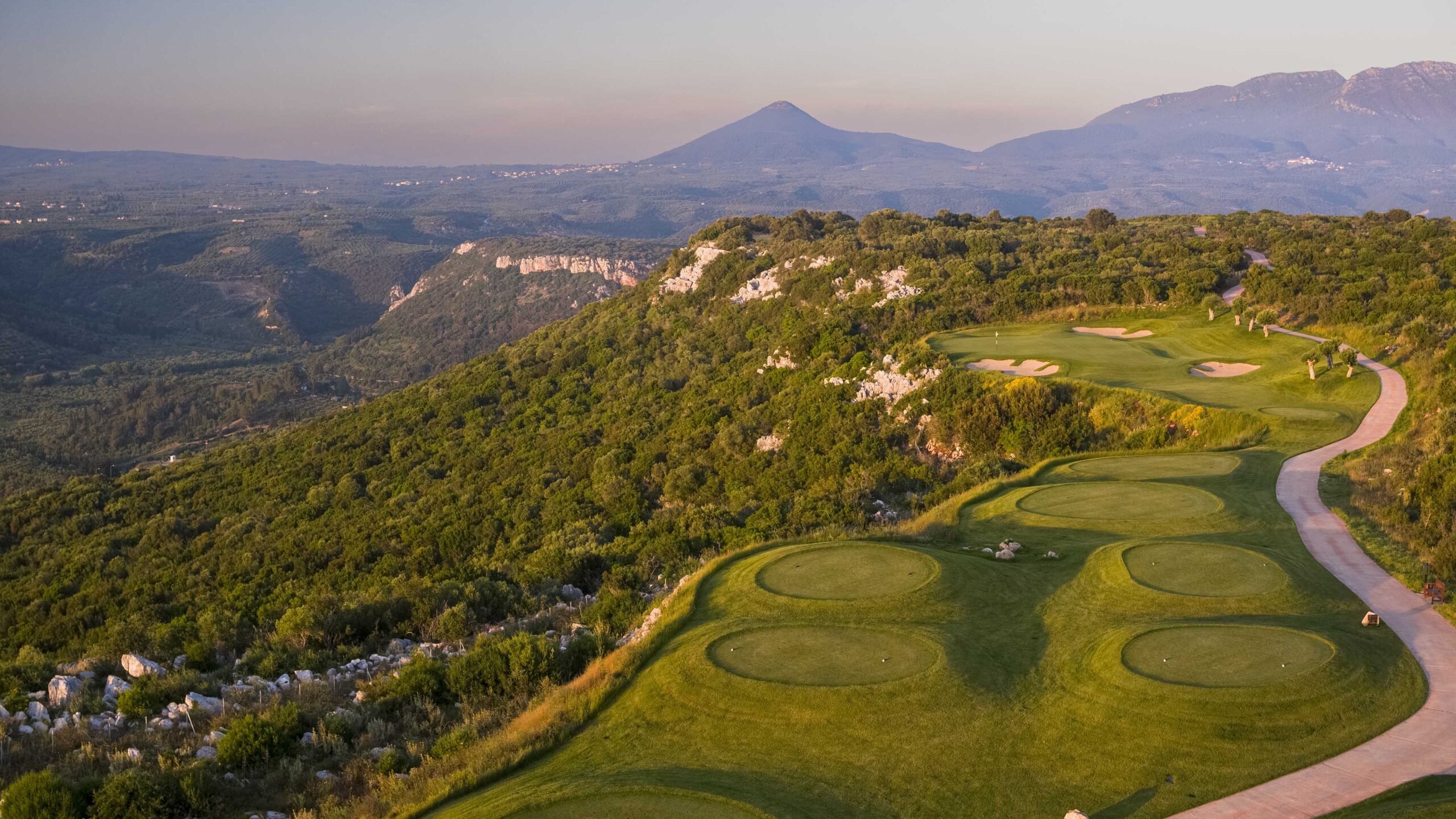 Der International Olympic Academy Golf Course und der The Hills Course befinden sich auf der Spitze eines Plateaus, 20 Autominuten vom The Westin Resort Costa Navarino und seinem Platz The Dunes Course entfernt. Das W Costa Navarino Resort und das Mandarin Oriental sind in nur 5 Minuten zu erreichen. Der andere Golfplatz, The Bay Course, liegt nur wenige Minuten entfernt, genau zwischen dem W und dem The Hills Golf Course.