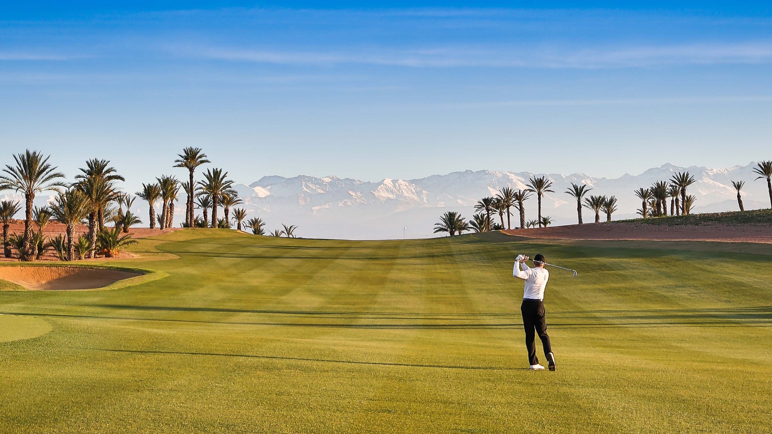 Sein Markenzeichen ist das 17. Par-3-Loch mit einem erhöhten Abschlag, von dem aus Sie die hinteren Neun und das beeindruckende Atlasgebirge überblicken können