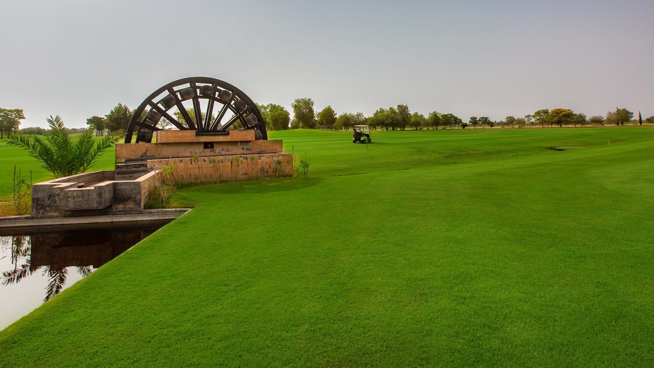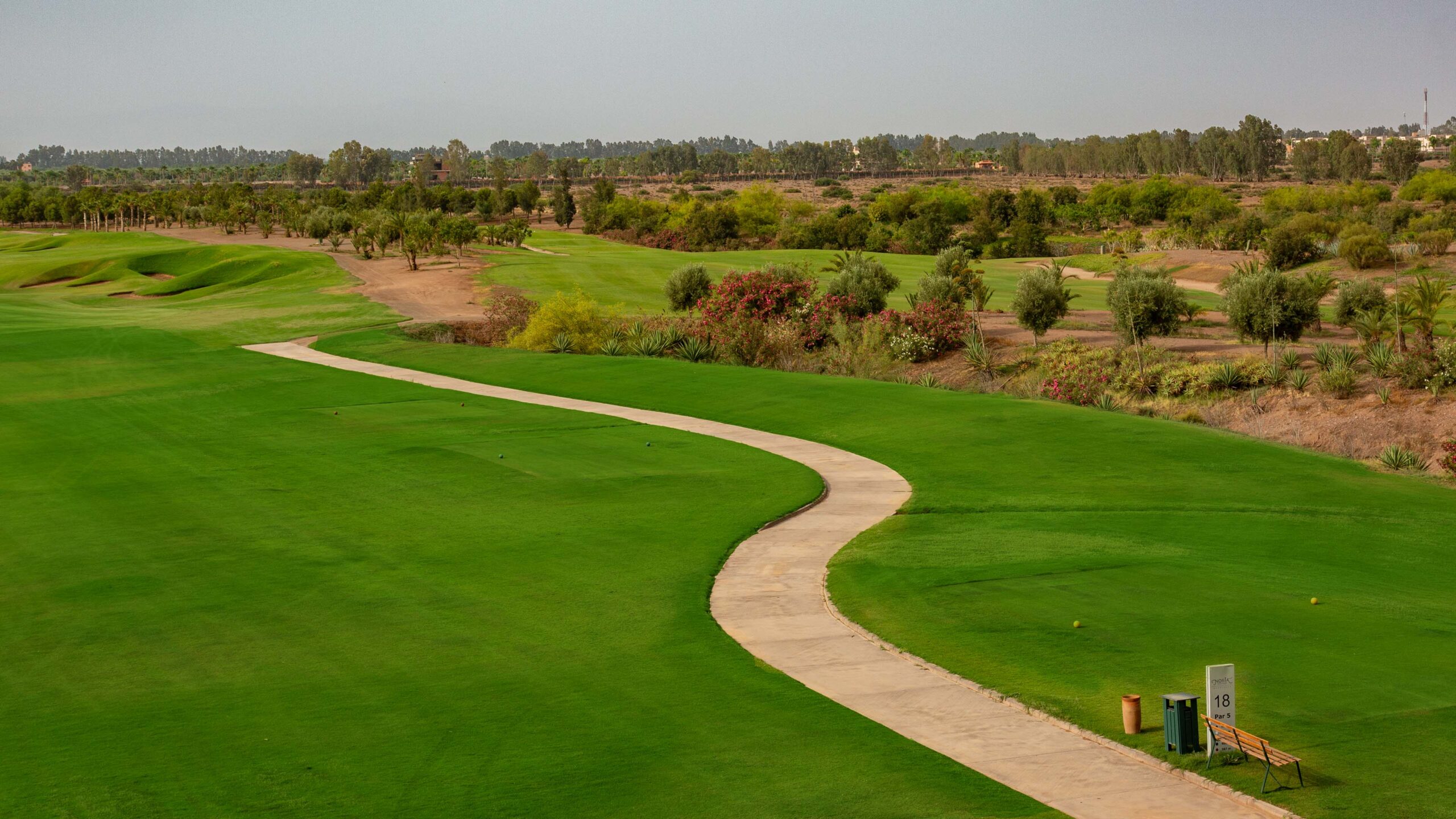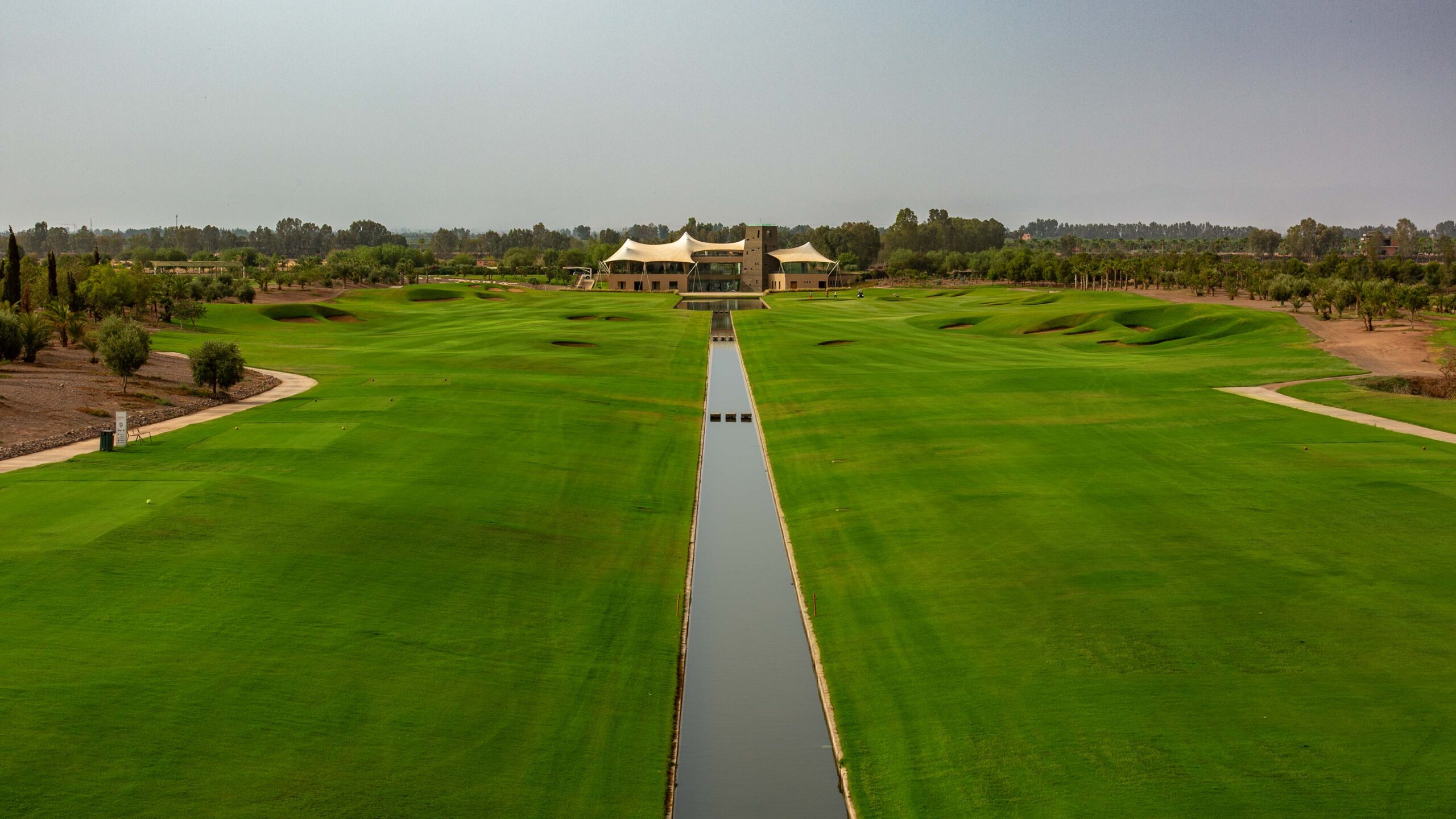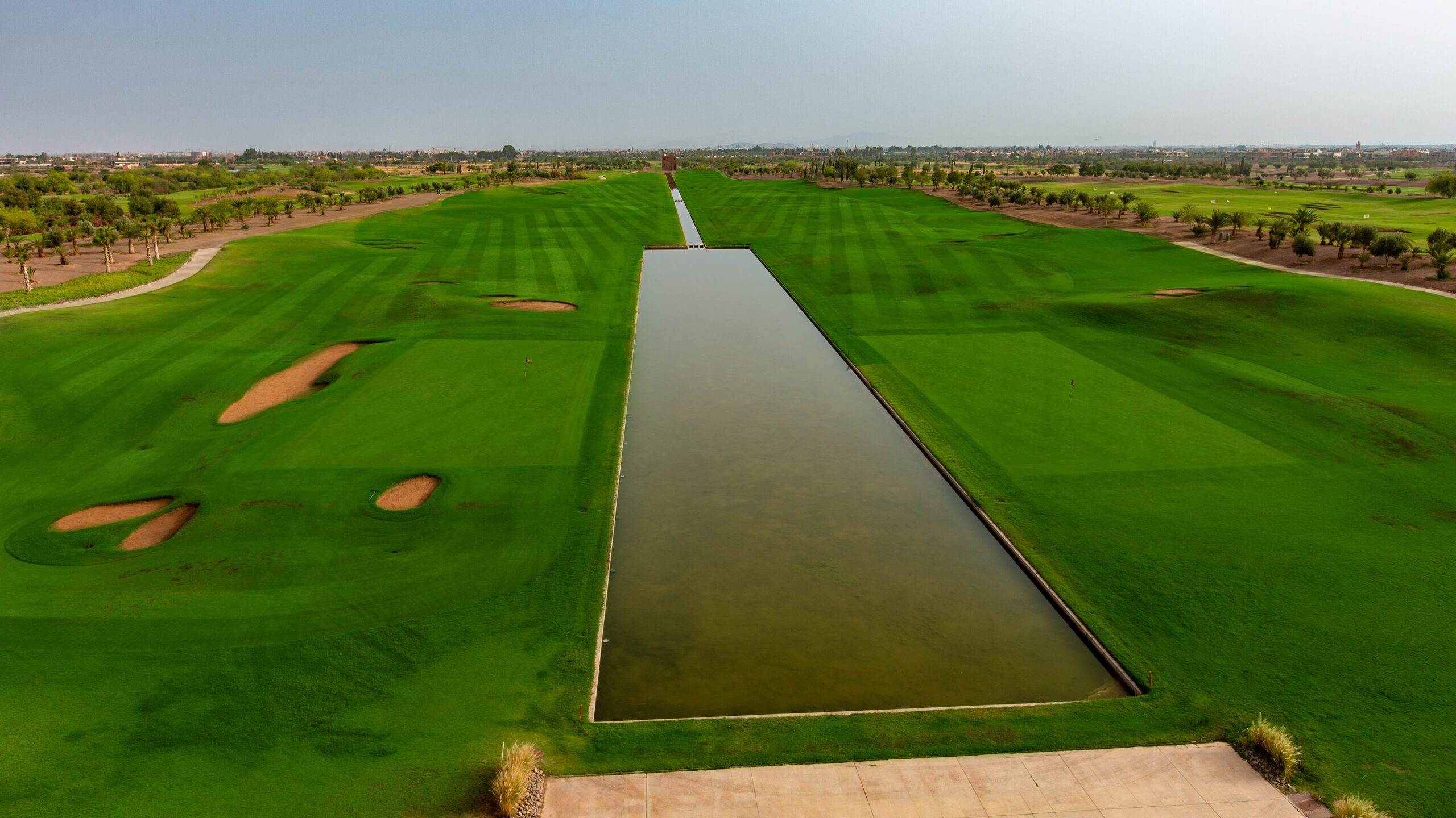 Mehr InfosDer 6.589 Meter lange Platz schlängelt sich von den Profiabschlägen aus durch Olivenhaine, Lavendelfelder und Wüstenlandschaften, bevor er ein dynamisches, paralleles Finish entlang eines herrlichen traditionellen Beckens erreicht, das das 9. und 18. Loch voneinander trennt. Diese Umgebung wurde mit einer Vielzahl traditioneller marokkanischer Elemente ausgestattet: von reflektierenden Pools, Wasserfällen und -becken bis hin zu architektonischen Elementen wie Glocken- und Wachtürmen, Wadis (Flussbette in der Wüste) und sogar einem Wasserrad, das ein traditionelles marokkanisches Landschaftselement ist und in das 15. Loch integriert ist.