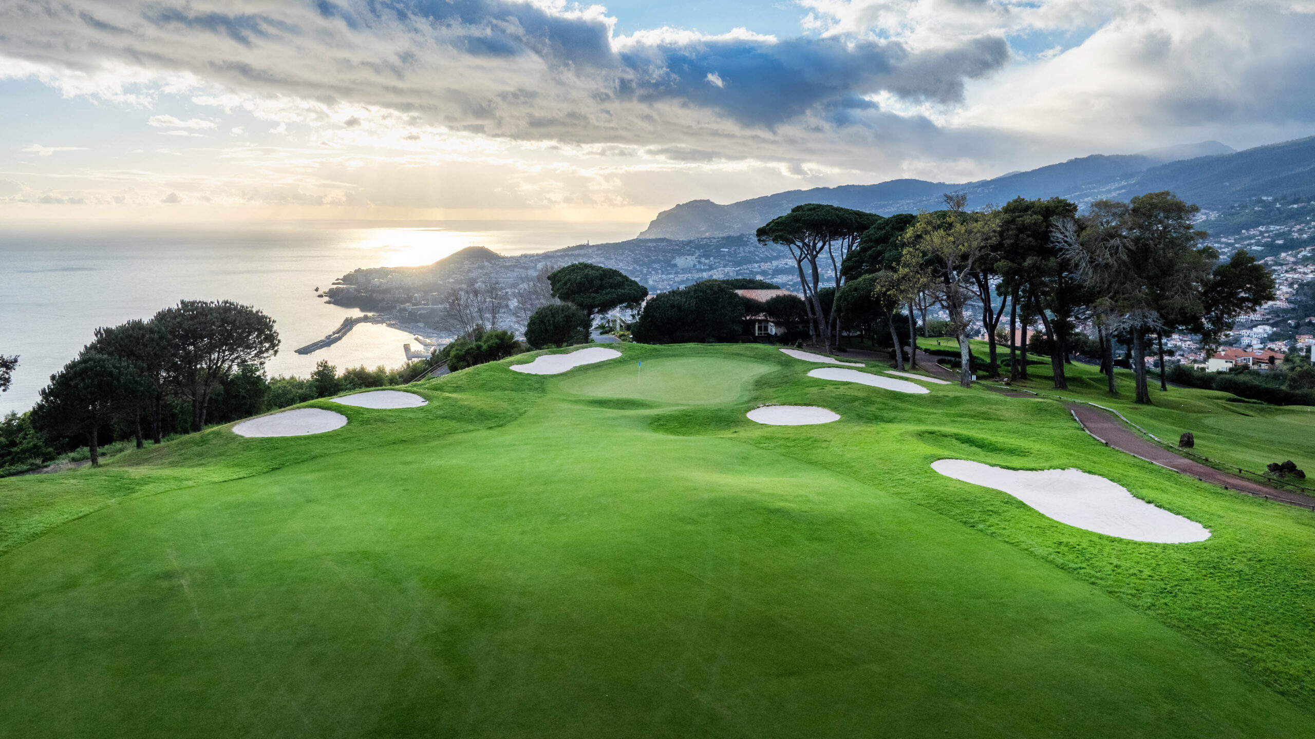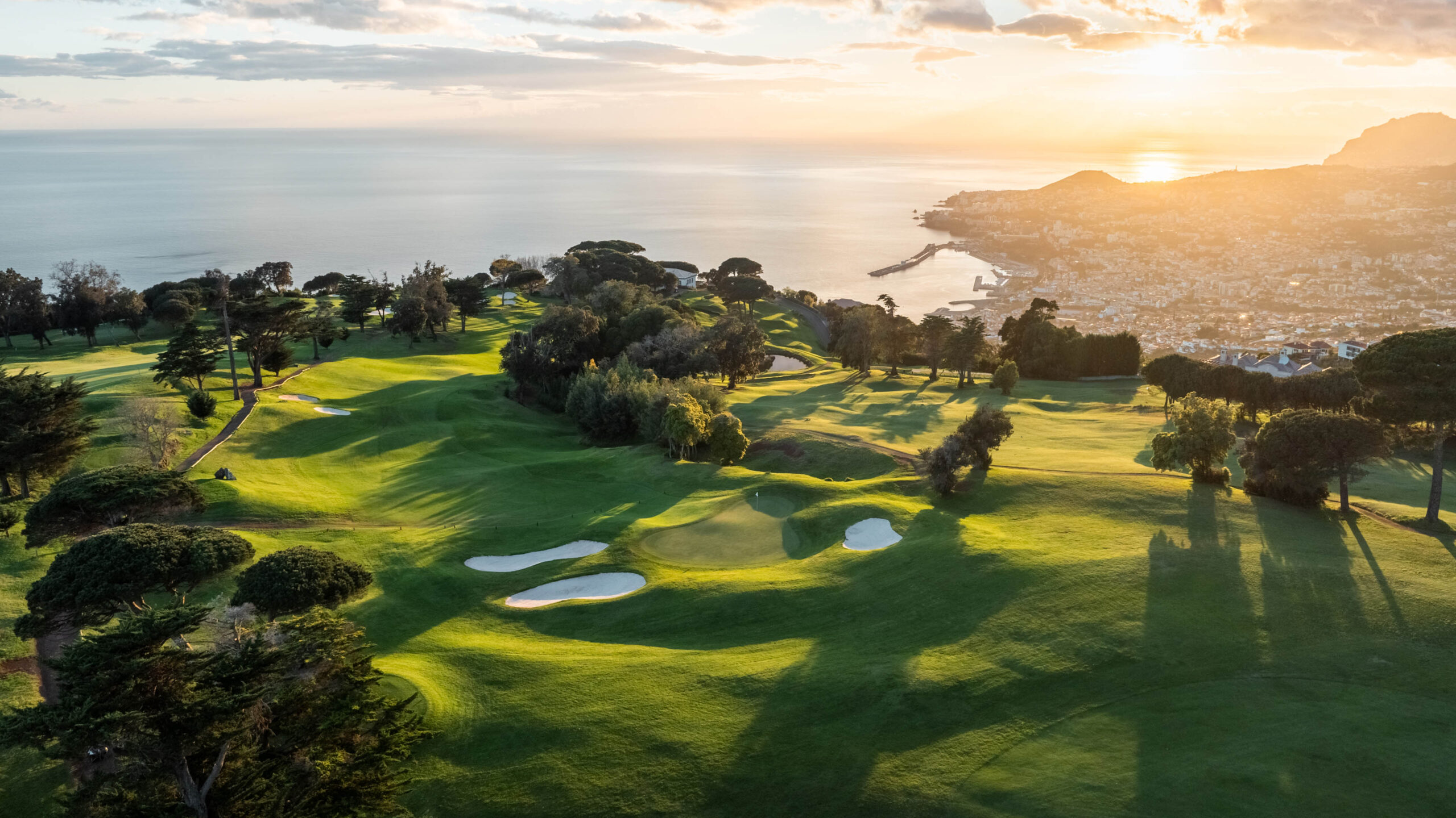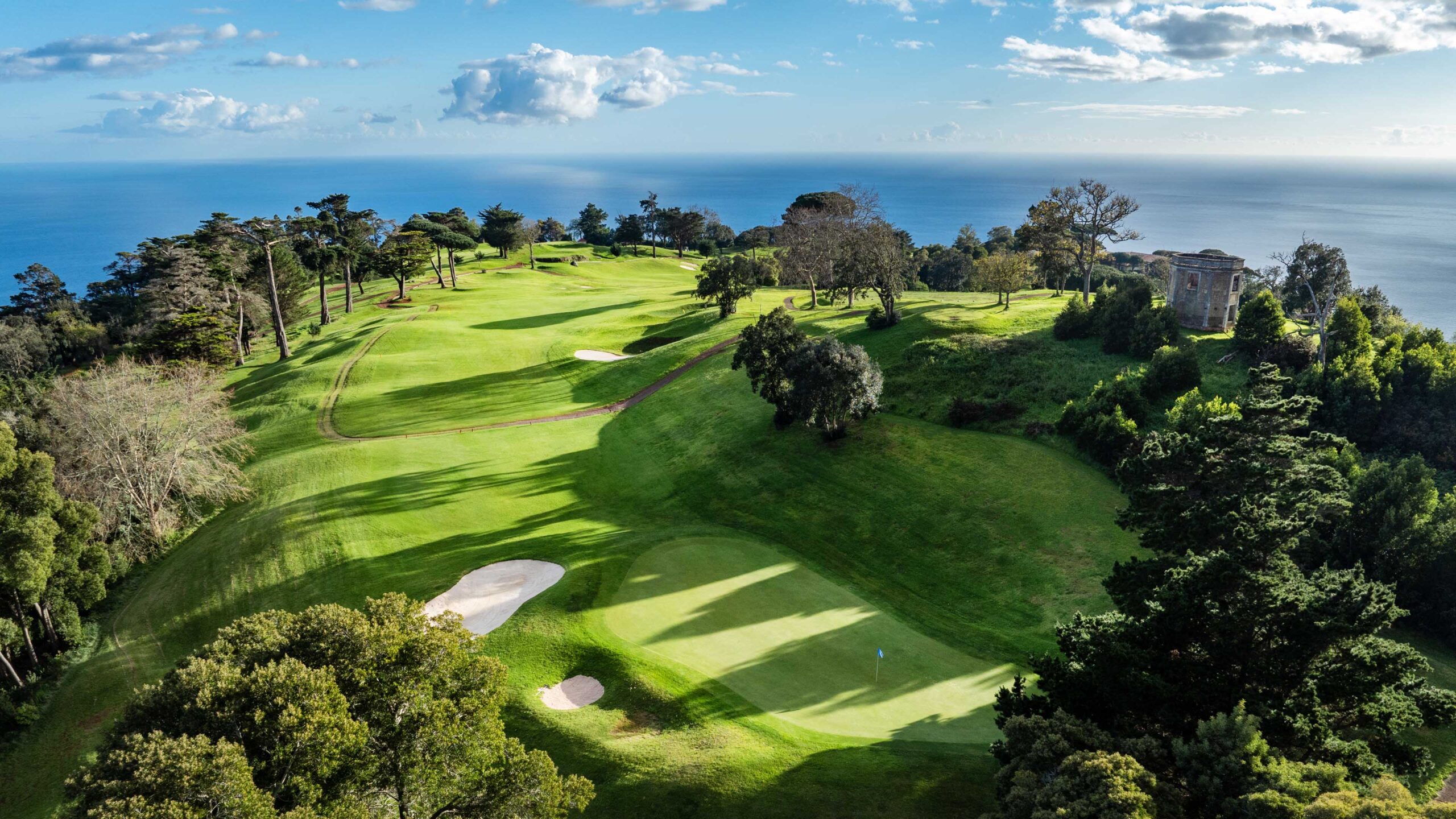 Auf 500 Metern über dem Meeresspiegel schlängelt sich der wunderschöne Palheiro Golf über das bergige Gelände der Insel Madeira und stellt eine unvergleichliche Herausforderung dar, bei der seine abrupten Kämme und tiefen Täler Ihre Präzision auf die Probe stellen. Cabell B. Robinson hat diesen malerischen 18-Loch-Platz entworfen, der bei jedem Schlag eine unglaubliche Aussicht über die Bucht von Funchal und den riesigen Atlantischen Ozean bietet.