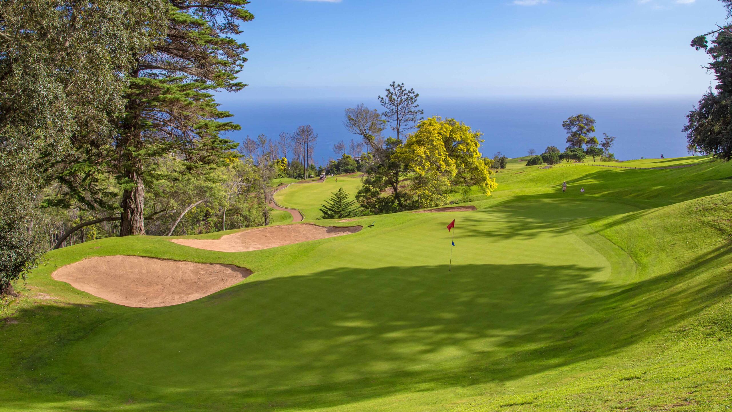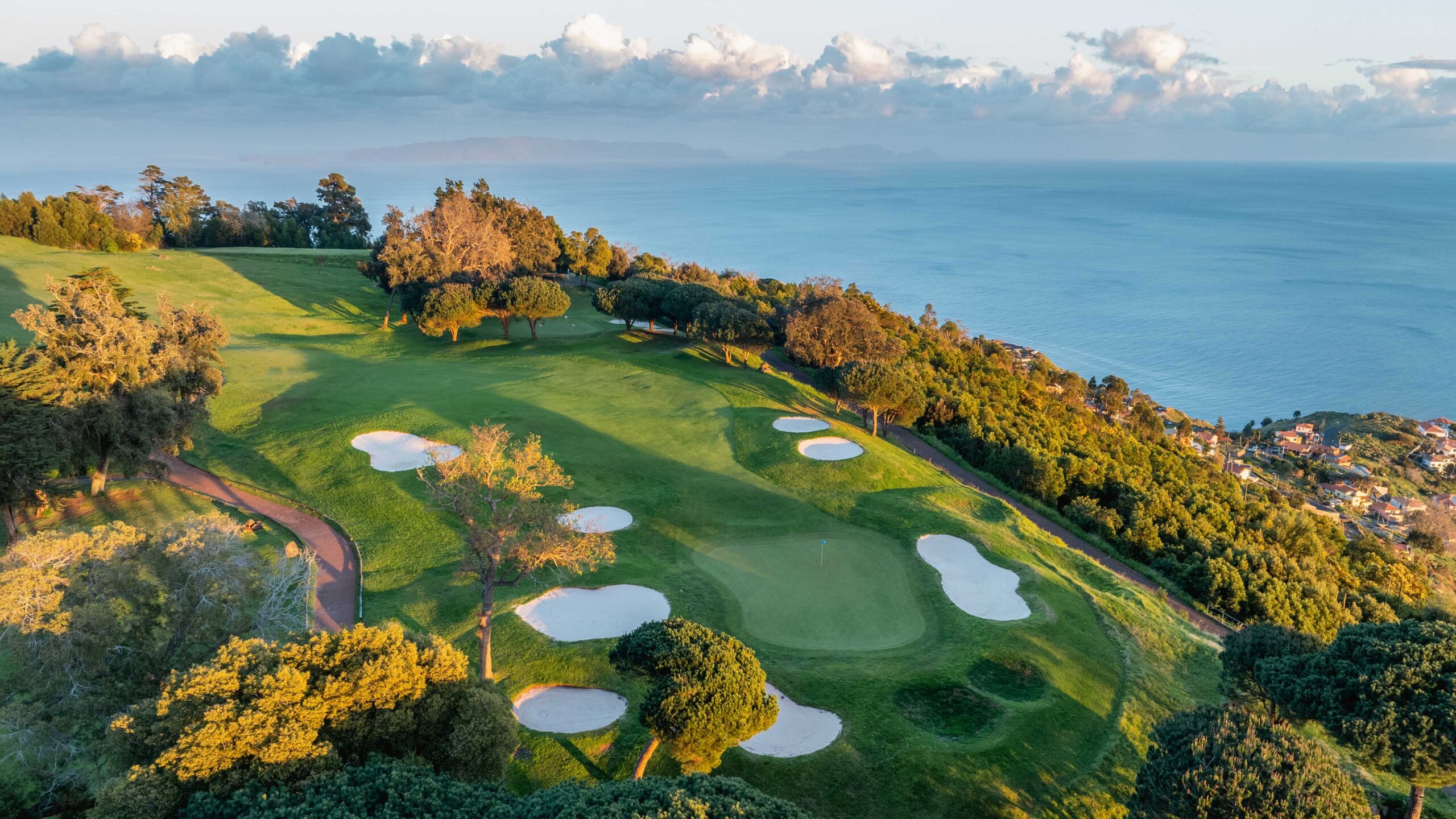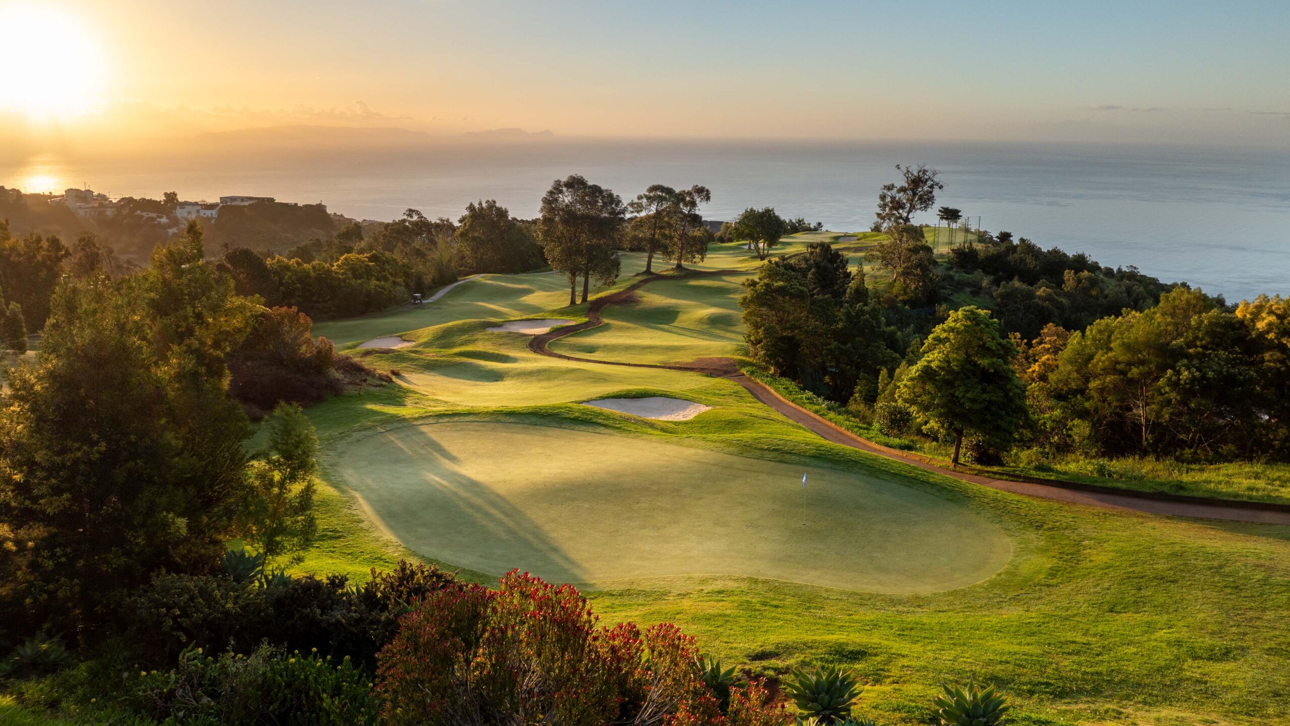 Auf 500 Metern über dem Meeresspiegel schlängelt sich der wunderschöne Palheiro Golf über das bergige Gelände der Insel Madeira und stellt eine unvergleichliche Herausforderung dar, bei der seine abrupten Kämme und tiefen Täler Ihre Präzision auf die Probe stellen. Cabell B. Robinson hat diesen malerischen 18-Loch-Platz entworfen, der bei jedem Schlag eine unglaubliche Aussicht über die Bucht von Funchal und den riesigen Atlantischen Ozean bietet.