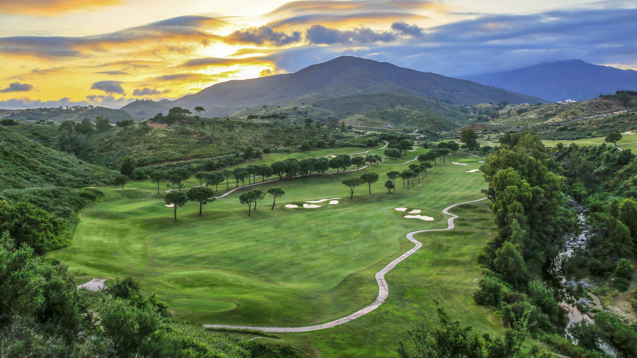 Der Golfplatz America, der bei seiner Eröffnung im Jahr 1990 als North Course bekannt war, war neben dem Asia Course das erste Projekt des Architekten Cabell B. Robinson. Der in den Hügeln gelegene Platz mit seinem herrlichen Blick auf die Sierra de Ojén und das Mittelmeer erfordert von den Golfern Präzision und wohlüberlegte Annäherungsschläge.