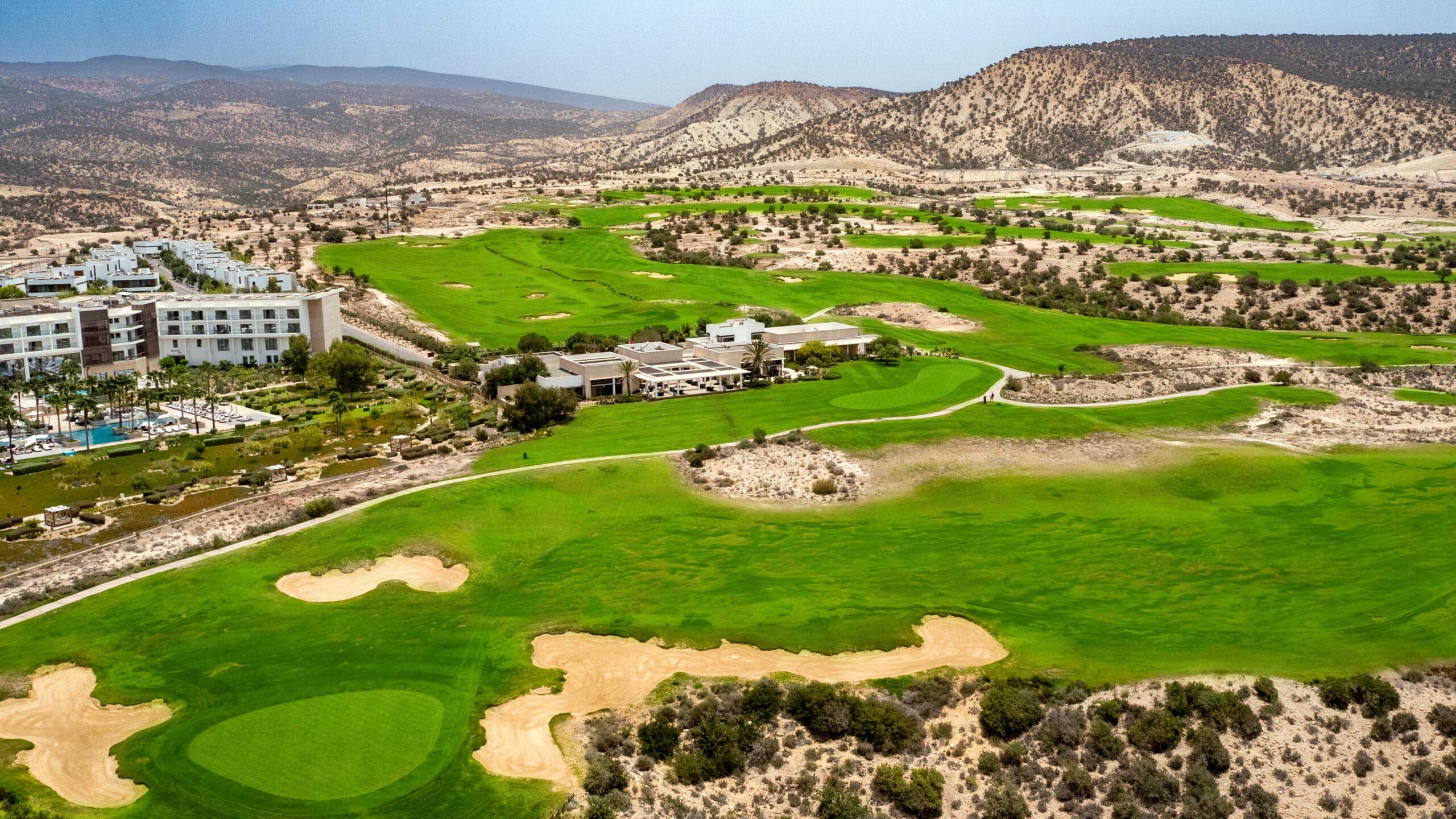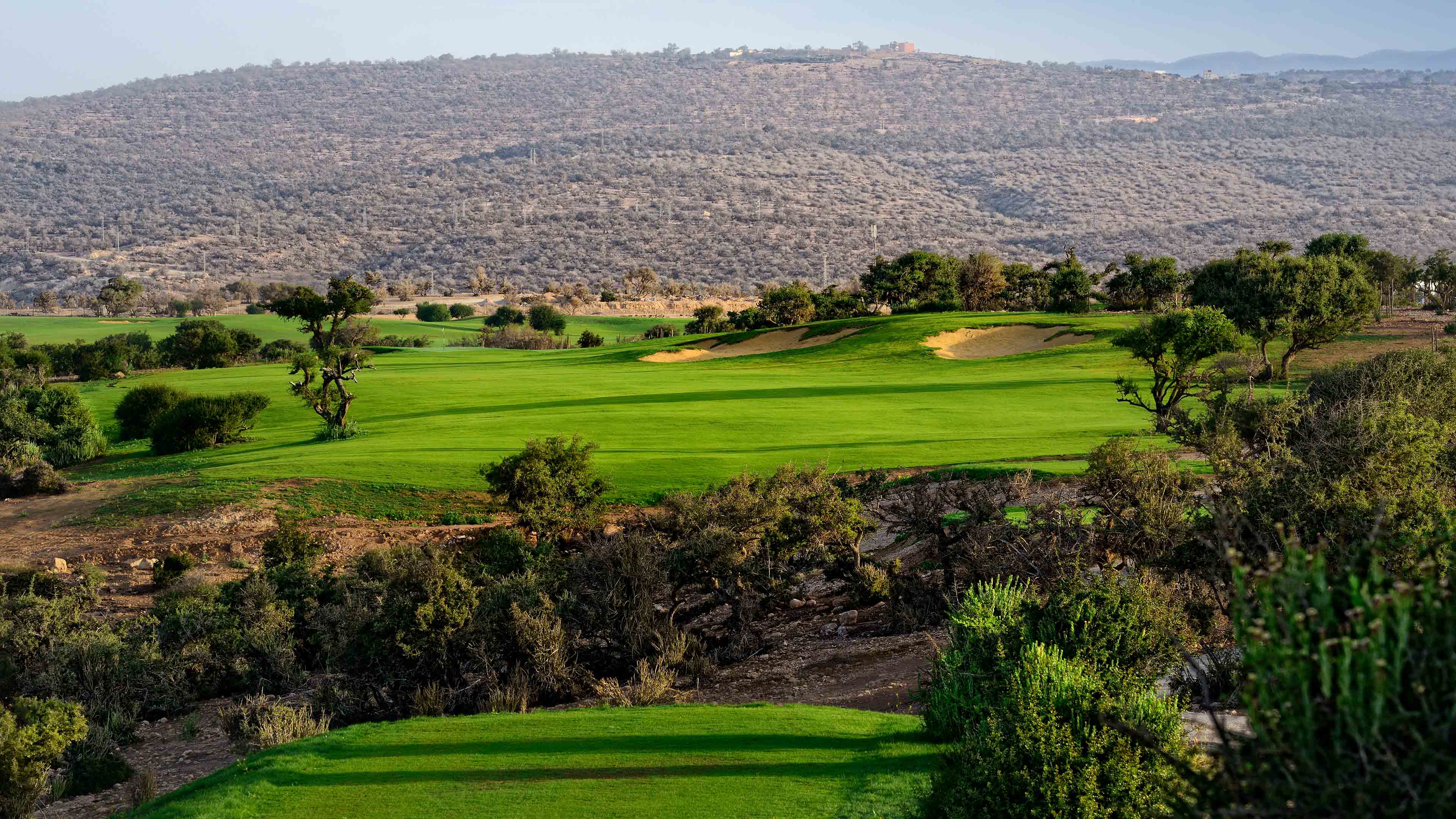 Mehr InfosTazegzout Golf erstreckt sich über die einheimische Argan-Vegetation auf einer Fläche von 76 Hektar in 80 Metern Höhe über dem Meeresspiegel und bietet einen herrlichen Blick auf den Atlantik. Zu Beginn führt der Platz ins Landesinnere, wo sich die Fairways durch die zerklüftete Wüstenlandschaft schlängeln, wobei riesige Bunker die größten Hindernisse darstellen. Schließlich wendet sich der Platz der Küste zu und erreicht seinen Höhepunkt auf den letzten 3 Löchern, die über 2 tiefe Felsschluchten und am Rande einer hohen Klippe gespielt werden und bei denen es um alles oder nichts geht.