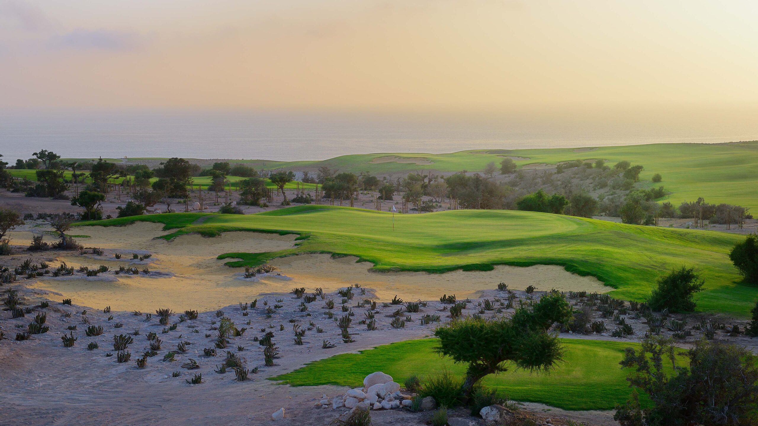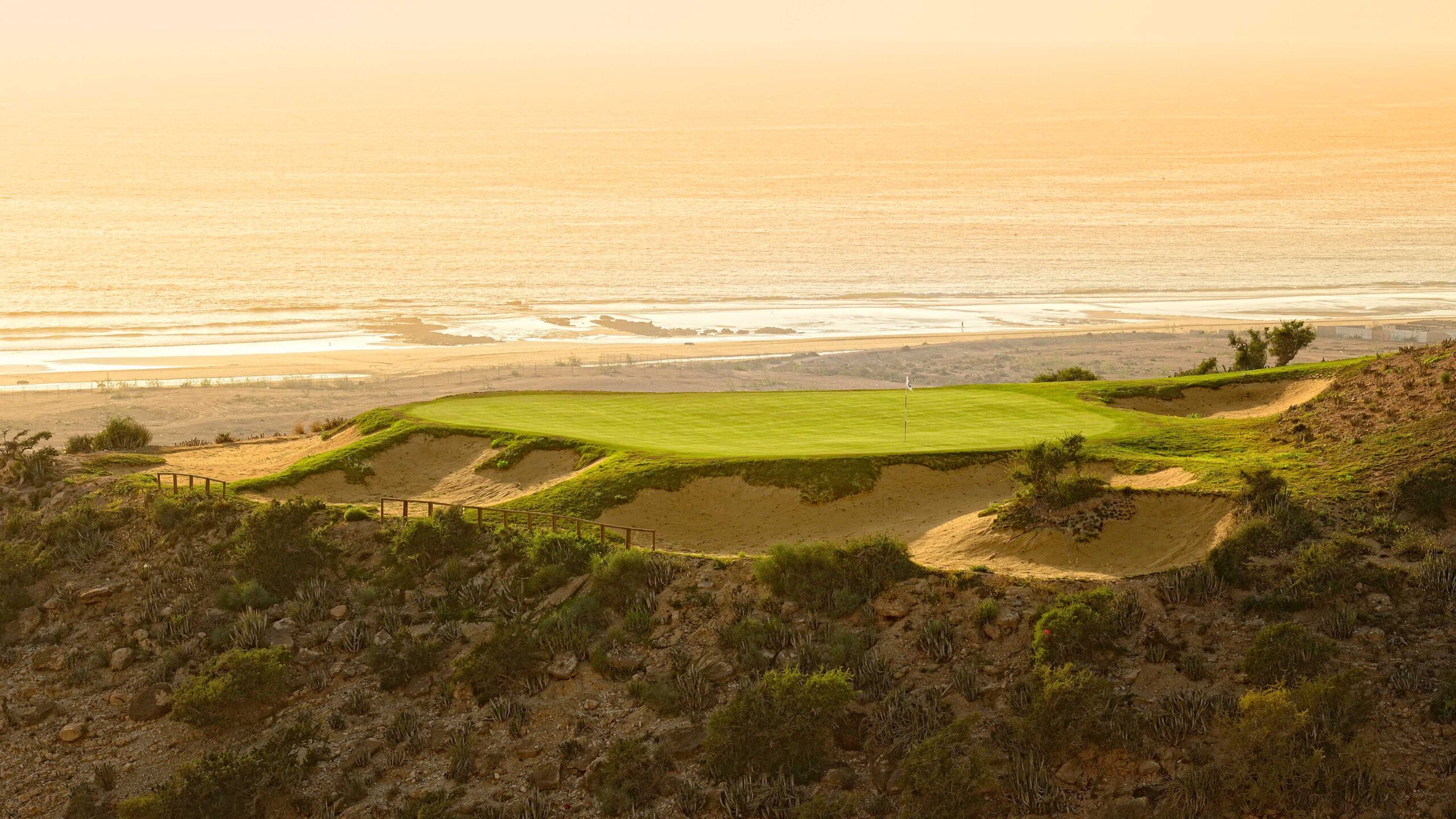 Mit Blick auf die Küste des Atlantischen Ozeans hat Kyle Phillips 18 spektakuläre und umweltfreundliche Löcher in natürlichen Landschaften entworfen, auf denen Golfer technische Herausforderungen, aber auch Spaß bei ihrem nächsten Golfurlaub in Marokko finden werden.